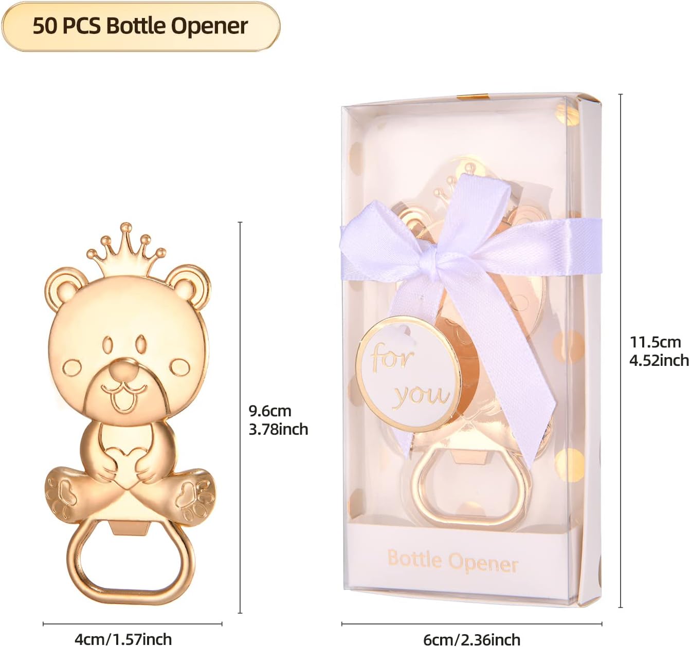 Introducing our Popping Bottle Openers Baby Shower Return Favors for Guests! These cute and functional bottle openers are perfect for any baby shower party decorations. Made from high-quality materials, these bottle openers are not only durable but also adorable. Each bottle opener features a bear design, making it a perfect gift for baby shower souvenirs. With our baby bottle opener, your guests will be able to enjoy their favorite drinks with ease. Simply pop off the bottle cap with the help of our easy-to-use popper. The compact size allows for easy storage in a purse or pocket, making it perfect for on-the-go. These baby shower bottle openers are also a great game prize for baby shower party games. Guests can compete for the chance to win one of these cute and functional bottle openers. Our Popping Bottle Openers Baby Shower Return Favors for Guests are available in packs of 50, making it perfect for all your baby shower guests. Whether it's a boy or girl, your guests will love taking home these adorable bear-themed souvenirs. Overall, our Popping Bottle Openers Baby Shower Return Favors for Guests are perfect for any baby shower party decorations, favors, gifts, and souvenirs. Functional, adorable, and easy to personalize, these bottle openers will be a hit with all your guests. Order yours today to make your baby shower a memorable one!