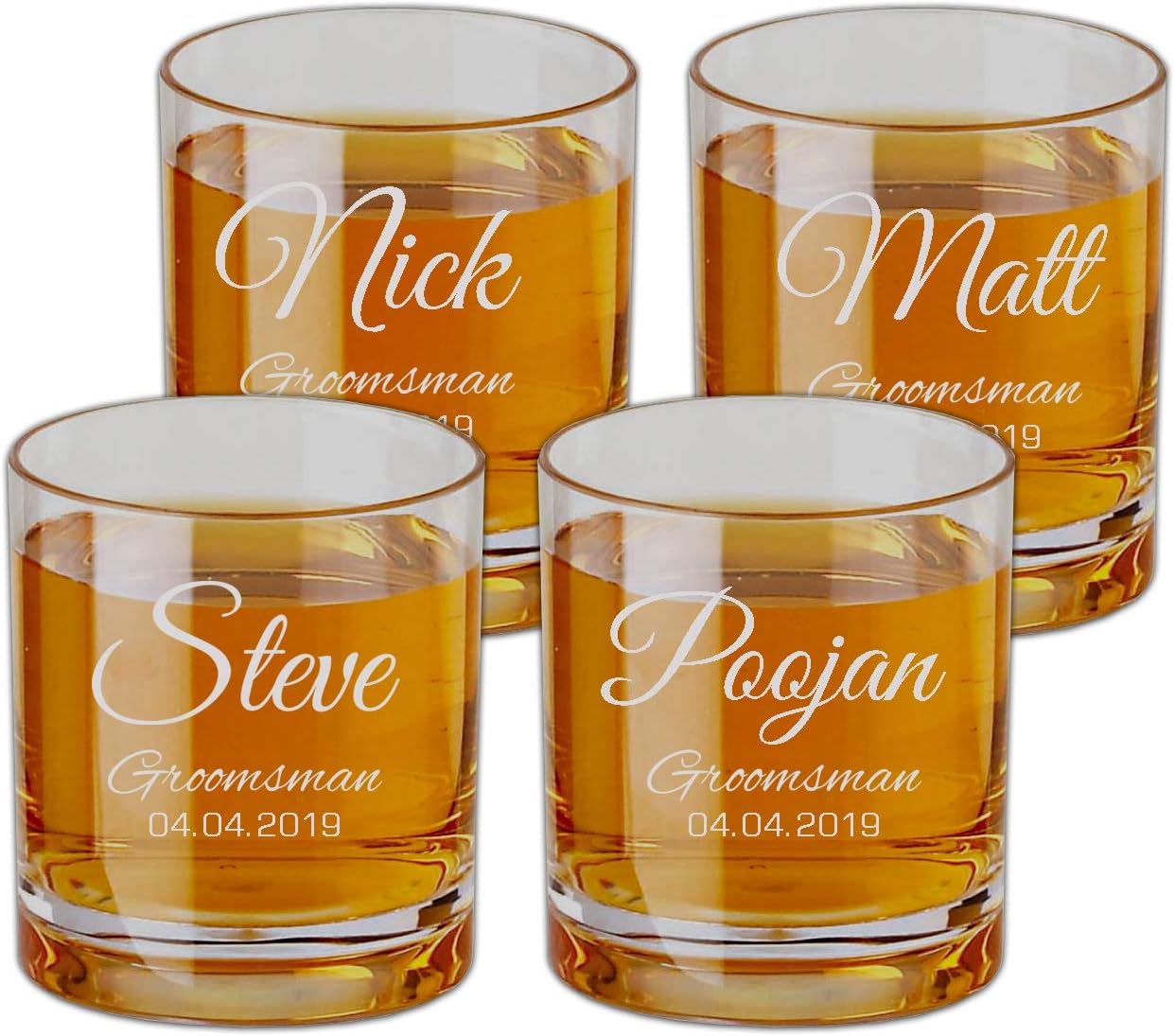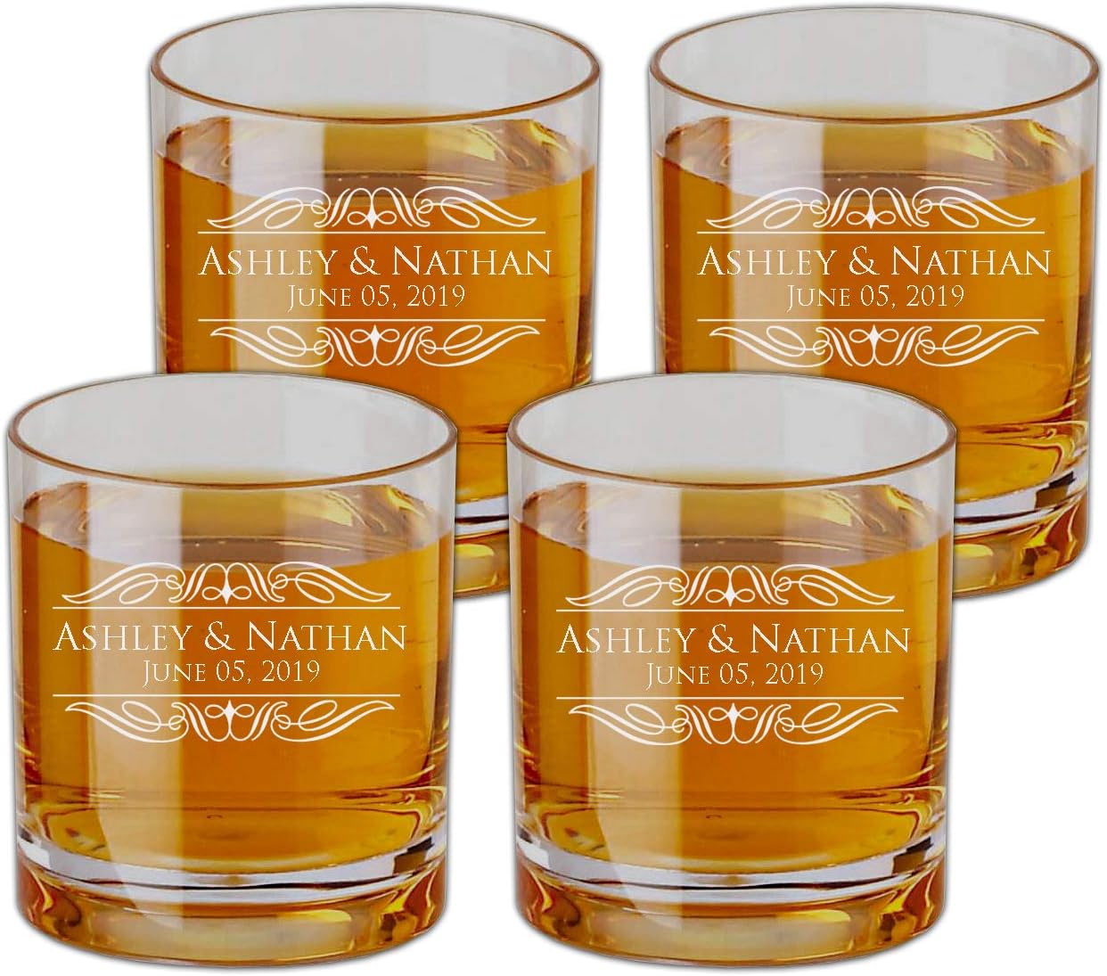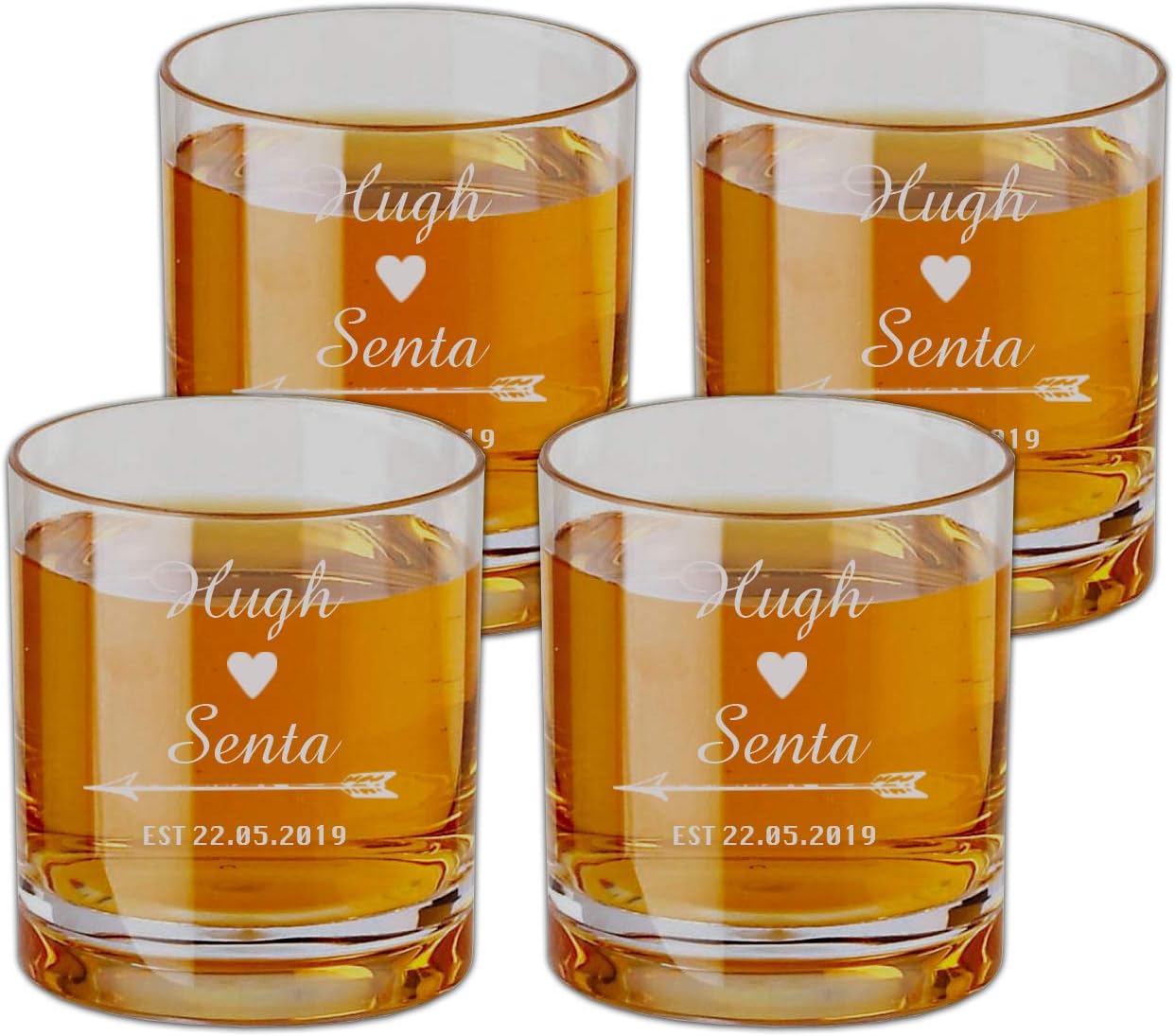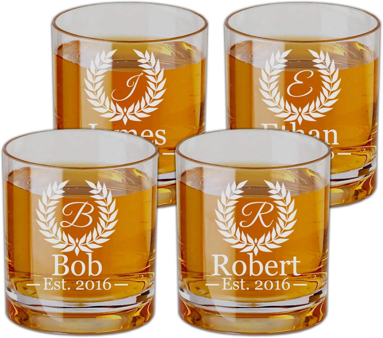 Personalized Engaved Scotch Glasses Set of 4, Old Fashioned Glass,Couple Initial Engraved on Burbon Glass, Wedding Whiskey Glass, Snifter Engraved Glass