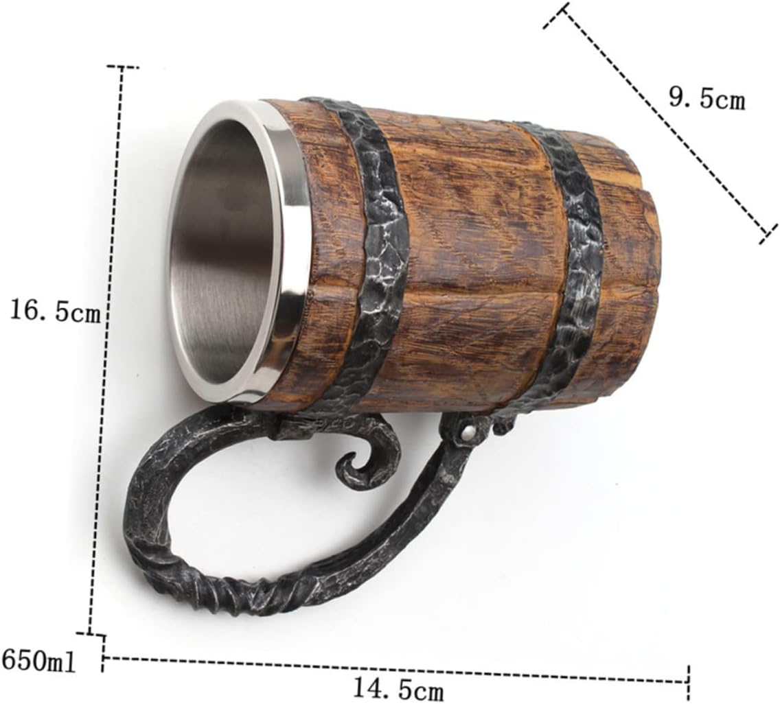 Package List 2 x Mug Features - This tankard could be a for your family and friends wooden beer mugs. - Creative 3D Mug with exquisite design and craftsmanship Coffee Cup with Lid. - 3D design and perfect detailed mug can be for all occasions, especially for Halloween Barreled Beer Mug. - Size: 16.5 x 9.5 x 4.5cm. - Material: resin and stainless steel Rustic Beer Mug. - Color: As shown Stainless Steel Tumbler. - cold cast resin tankard with stainless-steel insert vintage drinking mug. - Care instruction: use the brush to wash cups in and out, not just cleaning with water Wooden Beer Tankard. Goods Information wood mug with lid We use safe resin material and edible stainless-steel material to manufacture this product, drinking healthy water and leading healthy life is our persistent pursuit.coffee cups mugs This super cool mug is with exquisite craft, make it look more worth to be collected