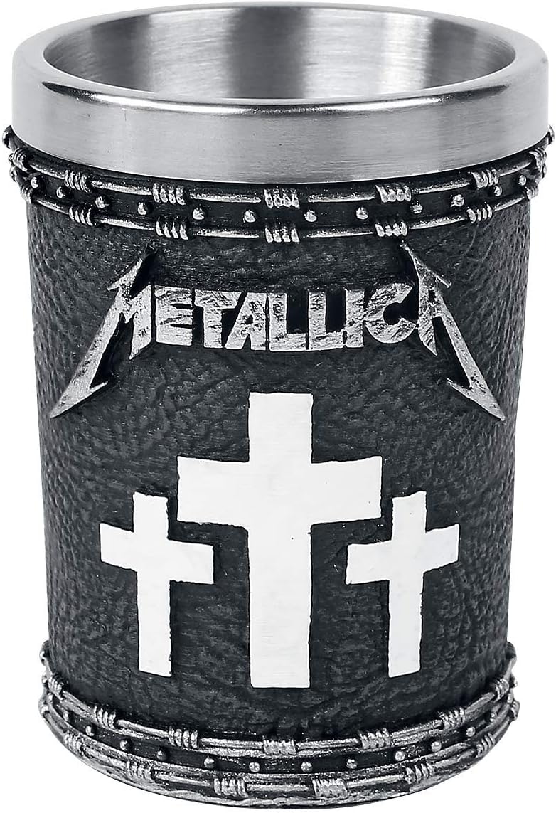 This product is for ornamental use. Have your favourite Metallica album artwork on display at all times with this exquisite Shot Glass! Featuring the understated artwork from their third studio album, it shows military-style graves stones lined up in neat rows in the centre of a white cross. Each stone is attached to strings leading to the Metallica logo. Cast in the finest resin before being expertly hand-painted, this piece comes with a removable stainless steel insert and is the perfect way to pay homage to one of the most influential heavy metal bands of all time!