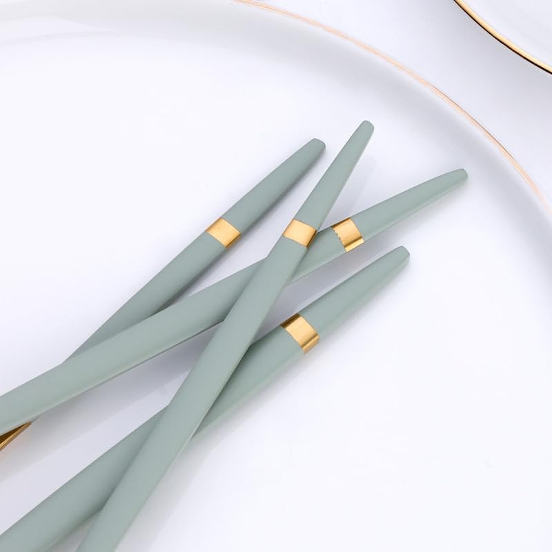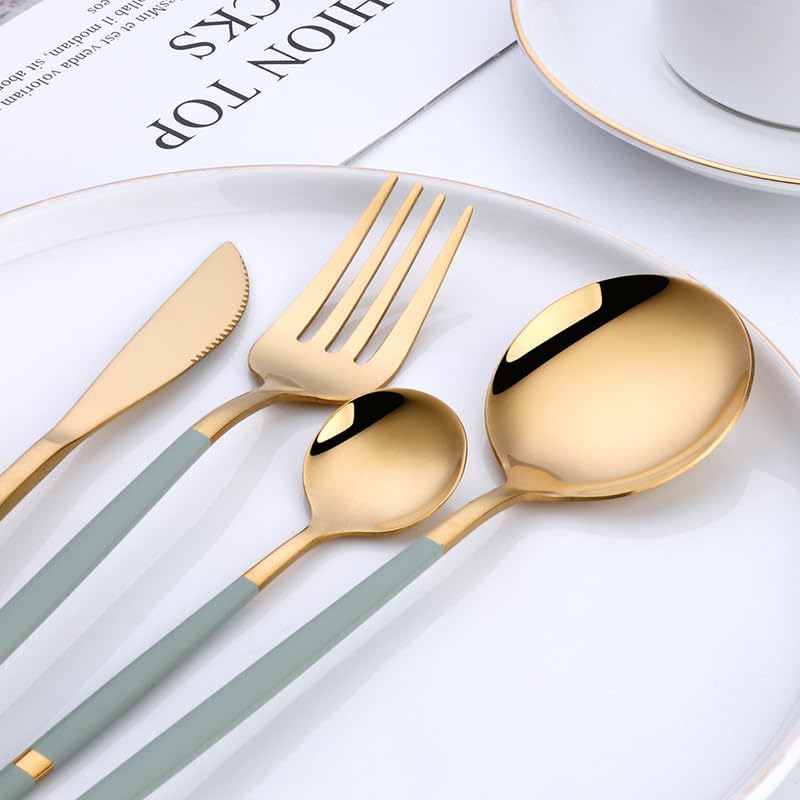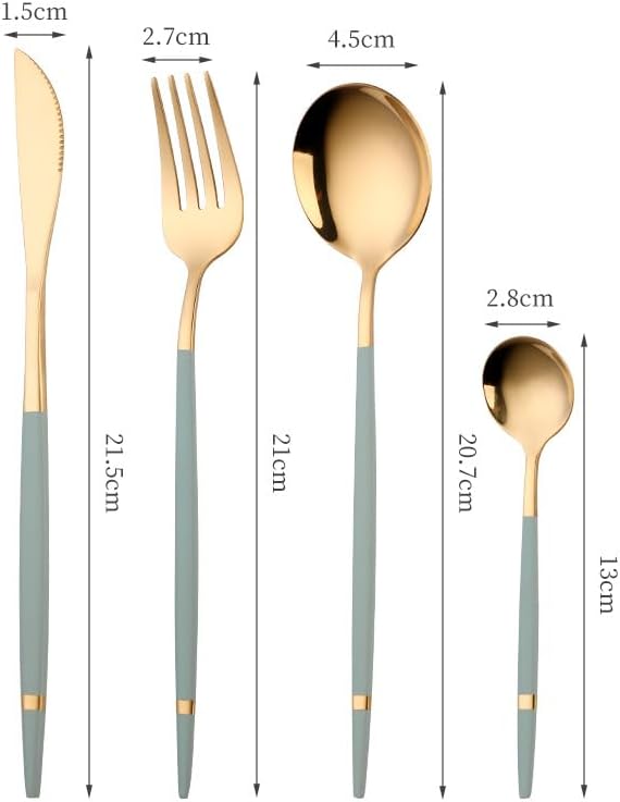 Product Category: Knife and ForkMaterial: Stainless steelPolishing process: cloth wheel polishing (mirror polishing)Applicable to: AdultsStainless steel material: 410 stainless steelColor: Portuguese green and gold dinner knifeColor: Portuguese Green Gold ForkColor: Portuguese Green Gold Table SpoonColor: Portuguese Green Gold Coffee SpoonColor: Portuguese black and gold dinner knifeColor: Portuguese black and gold forkColor: Portuguese black and gold main spoonColor: Portuguese black and gold coffee spoonColor: Portuguese pink gold dinner knifeColor: Portuguese Pink Gold ForkColor: Portuguese pink gold main spoonColor: Portuguese pink gold coffee spoonProduct quality grade: first-class.About our BrandOur brand is GOODJAYVEN. We have always been committed to Household items. Do our best to bring more creative products to our customers.
