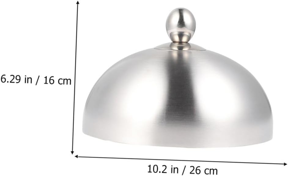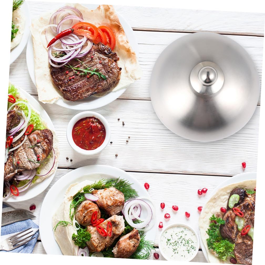 minkissy Stainless Steel Food Protector Cover 26cm Oilproof Dish Lid for Steak and Teppanyaki, Silver Sturdy Kitchen Gadget for Household Cooking and Serving