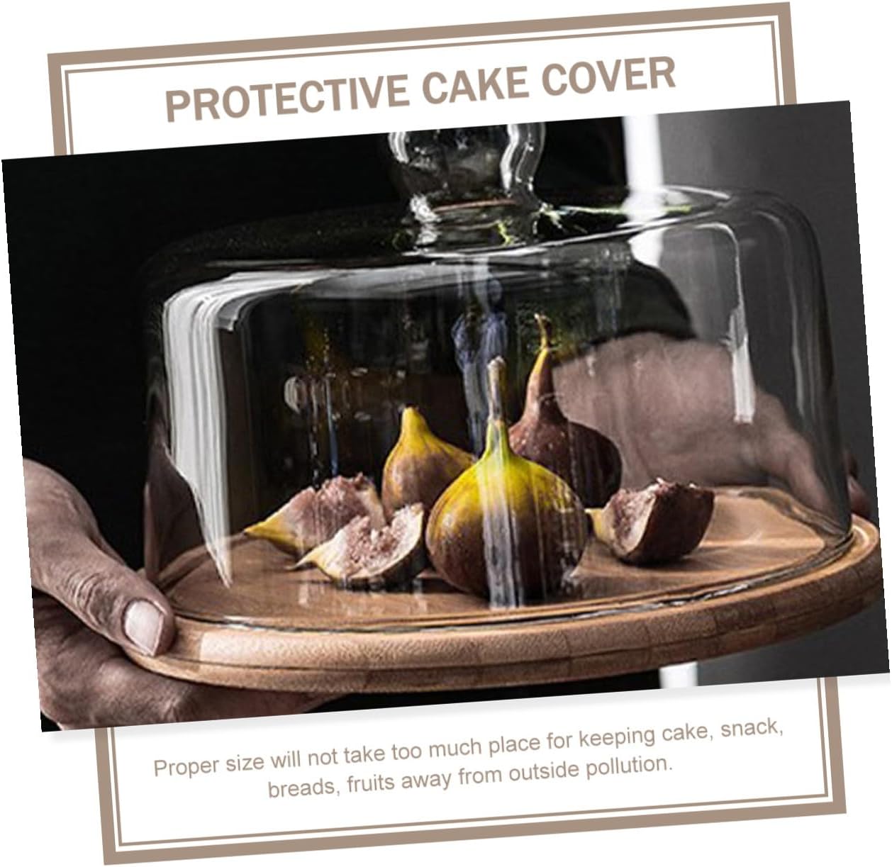 Package Include 1 x glass cake cover 1 x round base Characteristics - Material: Wood and glass. -Product Info:Cake cover - Color: As shown. - Size: About 24.00X24.00X12.00cm/9.43X9.43X4.72in. - A gripping handle suitable for the characteristics of human hands is comfortable to hold Dessert Protective Cover. - Can be used to cover your cake, dessert, snacks and some other food Food Protecting Cover. - Made of glass material, very sturdy and wear-resistant for long serving term. - Perfect for keeping food fresh when they are ready to table served Cake Displaying Cover. - It can keep your food clean and , compact size and practical.Goods Descriptionglass cake dome This is a practical food cover with base, which is great for protecting your food out of , , and , etc.dessert display can help to keep your food clean and save from undesirable.Household Cake Dome Don't worry about the to ruin your appetite anymore