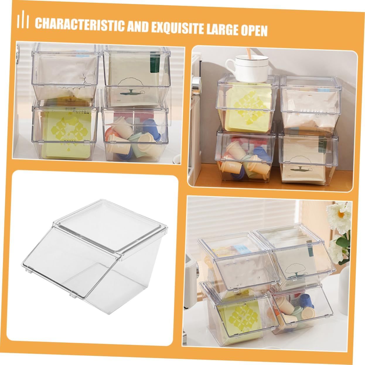 Package Include 4 x Tea Bag Organizers Features -Material:Acrylic home tea bag case -Size: 19.70X13.50X12.00cm/7.74X5.31X4.72in tea bag organizers -Color:Transparent tea bag organizer - Keeping small items organized in this box has allowed you to save time in finding them snack organizer. - Our tea bag storage box is beautiful in appearance and can be used as counter decoration tea bag container. - With this convenient storage box, many of your coffee bag can be stored in an organized way tea packets organizer. - Characteristic and large open. Simple and generous, smooth in lines tea bag holder. - Fine production process, acrylic material, this case is smooth surface and appearance tea packet holder.Goods Descriptiontea bag case Simple style Tea Bag Container, convenient to use.tea storage organizer Orderly placed and organized for your tea bags, sugar bags or other small items.tea bag boxes Practical and creative desktop storage case is very convenient to use and organize