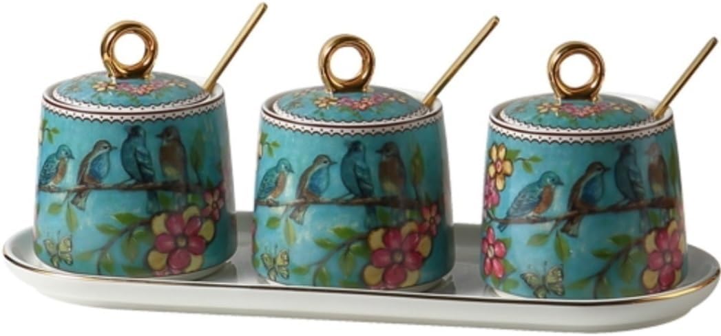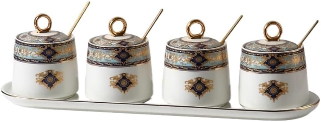MAKE DINING MORE ENJOY!! Product name: Seasoning jar set/Condiment Container Set /Spice Container Set /seasoning bottle set Material: Ceramic Product style: with lid + spoon+tray Packing List:1* seasoning bottle set Functional: Simple design,spices container set easy to clean,can be used to store sugar cubes,creamer,salt,pepper,etc. Multi-scene application: It is suitable for all kinds of scenes - family, hotel, cafe, party, restaurant with the elegant white porcelain and simple design. It is also suitable as a housewarming gift for your friends.