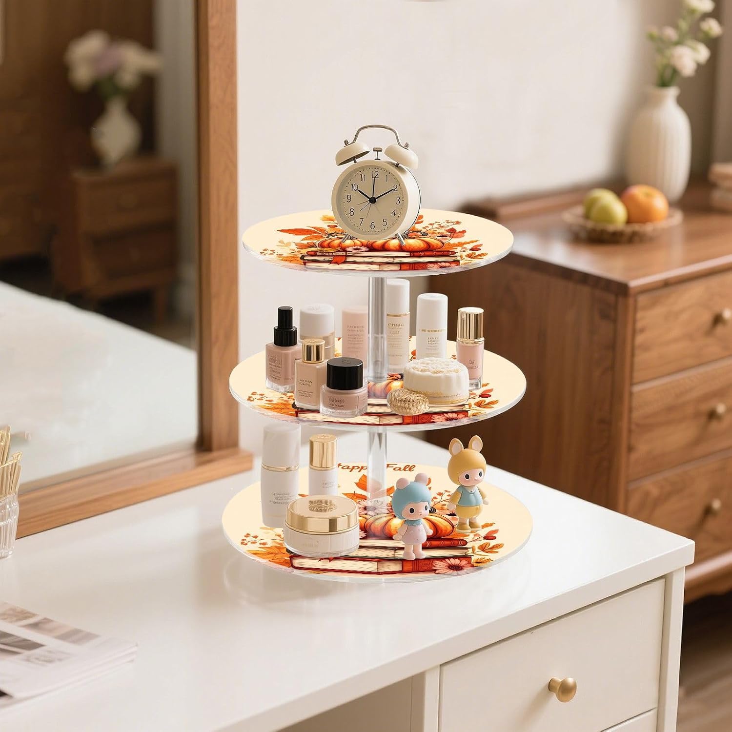 Pumpkin Sunflower Flowers Floral Maple Book 3 Tier Acrylic Cupcake Stand, Cupcake Stand for 34 Cupcakes for Weddings,Christmas,Holidays,Parties,Birthday,Printed Cupcake Tower 23300466