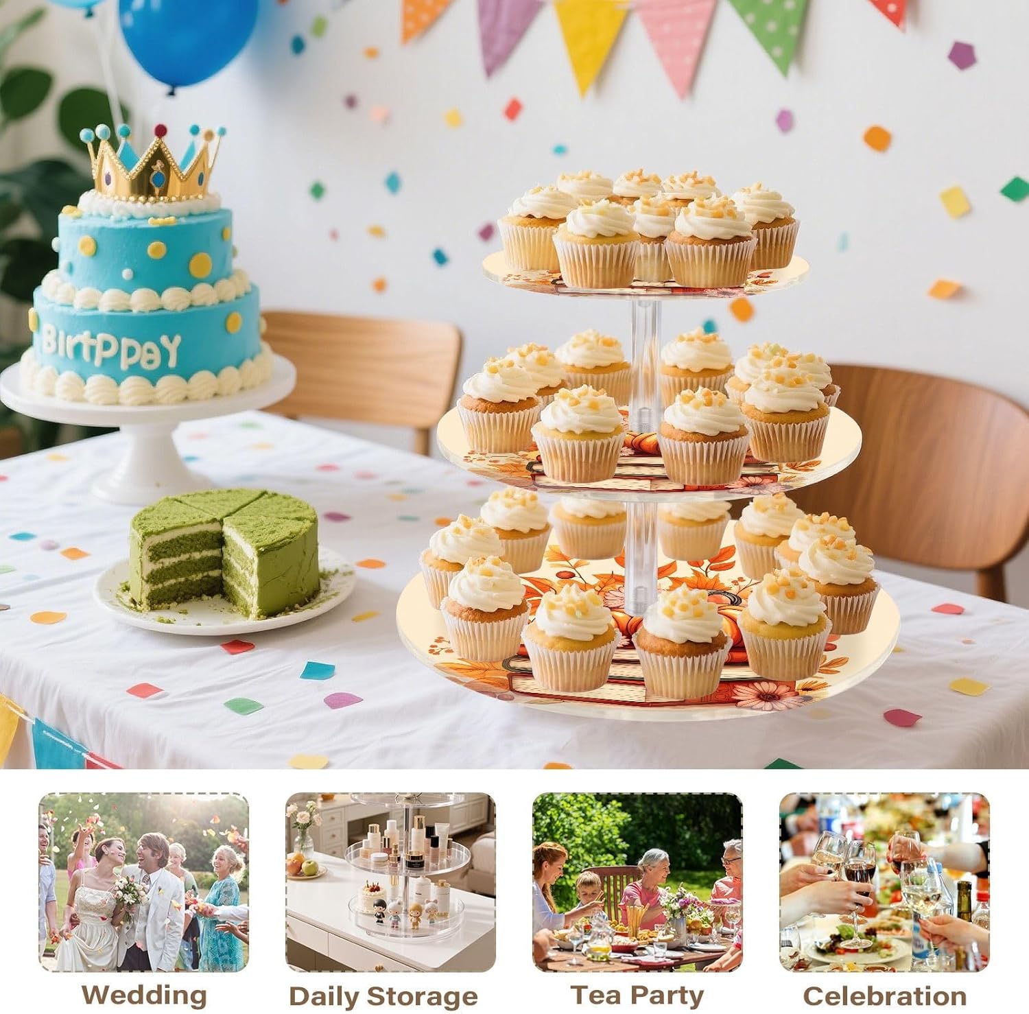 • Multi-Purpose Occasion: Ideal for a wide range of occasions, including family gatherings, children's parties, weddings, birthdays, anniversaries, baby showers, and holiday celebrations like Christmas and Thanksgiving. It can also be used as a candy bar decoration or for displaying other desserts.
