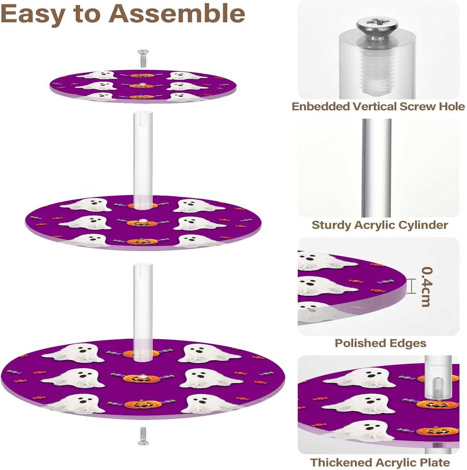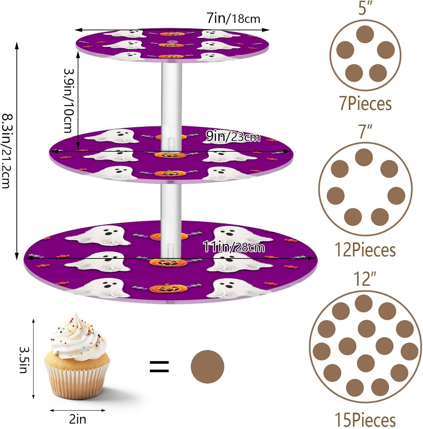 Ghost Sugar Pumpkin 3 Tier Acrylic Cupcake Stand, Cupcake Stand for 34 Cupcakes for Weddings,Christmas,Holidays,Parties,Birthday,Printed Cupcake Tower 23300114