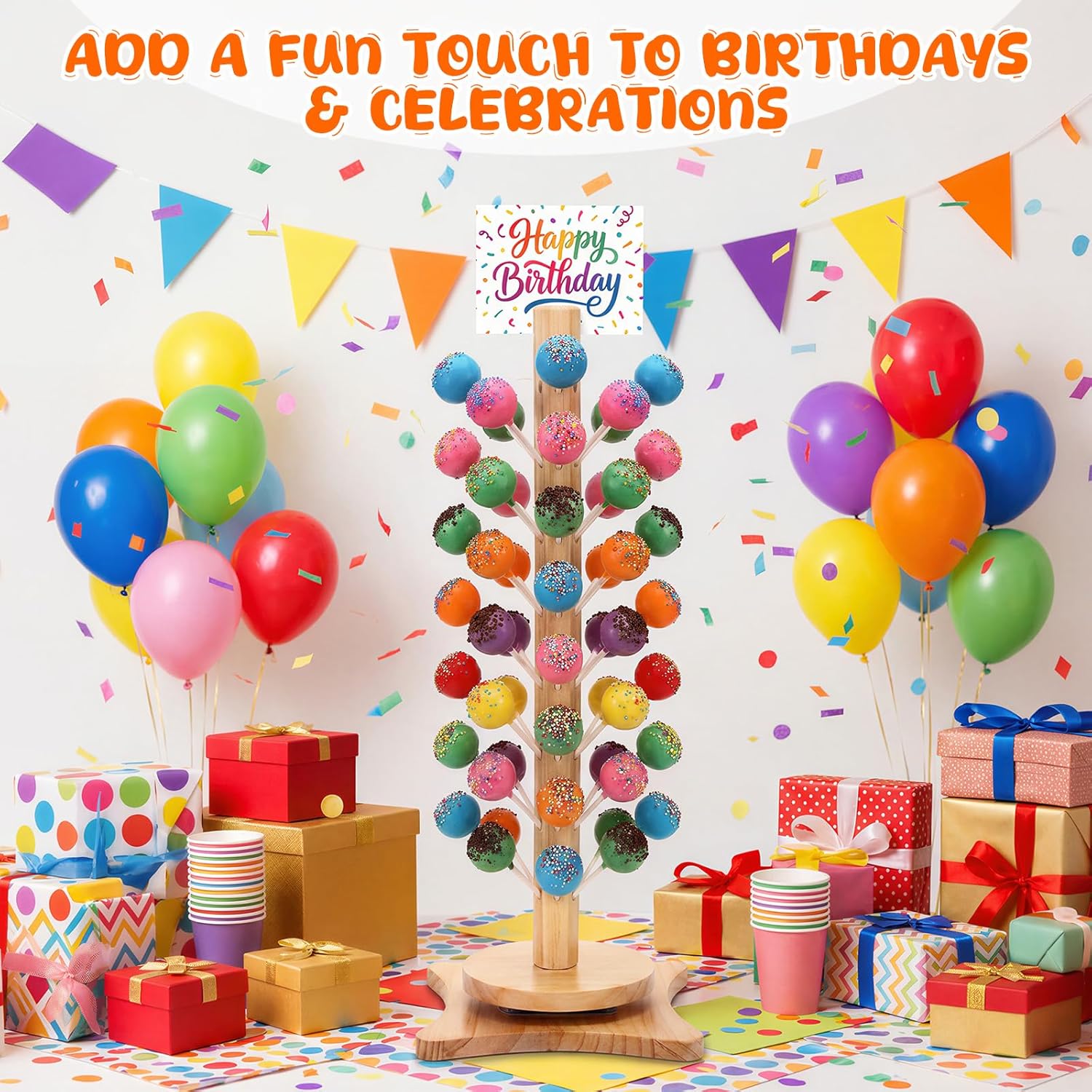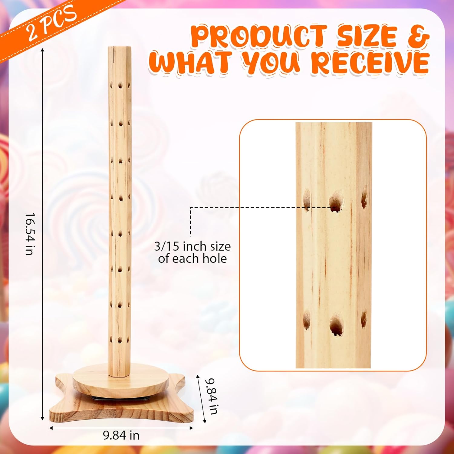 Features: Easy to Use And Maintain After assembly, place your treats in the holes and gently rotate the stand to showcase them. To care for the wood, simply wipe it with a soft, dry cloth and store it in a dry place. Set of Two For Ample Display Space With two complete dessert display stands in one pack, you have plenty of room to present a large assortment of dessert for your event, offering great value and presentation flexibility. Specifications: Material: pine Wood Package includes: 2 x Wooden Cake Pop Stand Notes: Manual measurement, please allow slight errors on size. The color may exist a slight difference due to different screen displays Small parts included, please keep them away from little kids to avoid swallowing risk