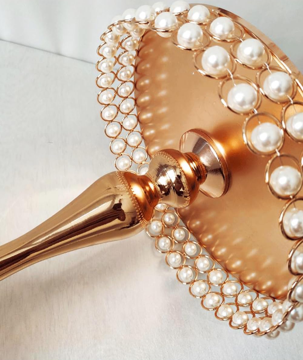 Rose Gold Plated Cheese Dessert Cupcake Cake Stand with Mirror Plate - Rose Gold Round with BasesLet's share the joy of life with our families and friends with a sincere love of life. God will bless us because we love life. A Good Gift for You!OccasionsSuitable for all types of events and parties such as tea party, baby showers, graduations, weddings, Christmas, thanksgiving, birthday parties anniversary celebration or for home decor.Create AtmosphereMake your cake presentation to be a whole new level, with this simple yet elegant cake stand! With cake stands/dessert tower, you can serve and present desserts or cupcakes like a artists, and enjoy your life all the time.Multi FunctionsIt could be used as cake stands, cupcake stands, dessert display stand. Multi-purpose serving plate/stand serve for cake, cupcake, candies, cheese, cookies, etc.Ideal for cakes less than 8 inches in diameter.