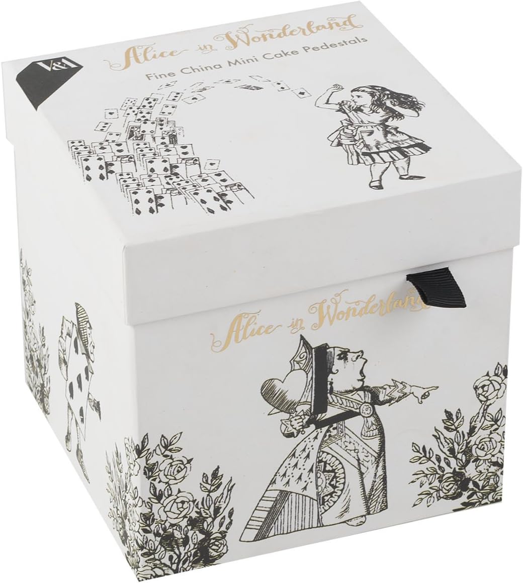 Product Description Product Description V&A Set of 2 “Alice in Wonderland” Mini Cake Stands by Creative Tops, 10 x 10 x 5.3 cm (4" x 2") Box Contains 2x Alice in Wonderland Mini Cake Pedestals. Set Contains: 2x Alice in Wonderland Mini Cake Pedestals