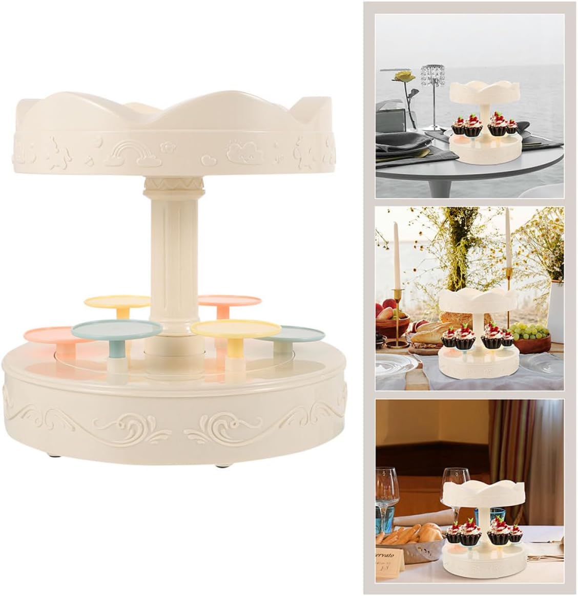 Package Include 1 x Automatic rotating cake stand Characteristics -Material:Plastic -Size:22.00X22.00X22.00cm/8.65X8.65X8.65in -Color:Beige -Product Info:Rotating dessert machine -Elegant design and versatility, used to showcase cupcakes, wedding cakes, desserts, cookies and other goodies rotating party cake stand. -The structure is well-designed and stable. Our products have light weight and good stability cake holder rack. -Large capacity, can put many small cakes on it. It also can help you . Automatic rotation design, all-round display of desserts automatic rotating cupcake stand. -The display rack is made of high grade material, which is for the long time to use. -It is multi-functional for you to not only display cake, but also dessert and cupcakes rotate cupcake stand. -Powered by 3pcs AA batteries (Not Included) rotating cupcake holderGoods Descriptionmulti-function dessert holder Simple structure, rotating design helps make it convenient to use.cupcake display rack wheel It is made of plastic material, and for you to use.cake stand rotating Wanna buy a practical auto rotating sushi display stand? If so, this automatic rotating sushi display stand is the for you.rotating party cake stand In addition, it can be applied for cake, cupcake, desserts and more