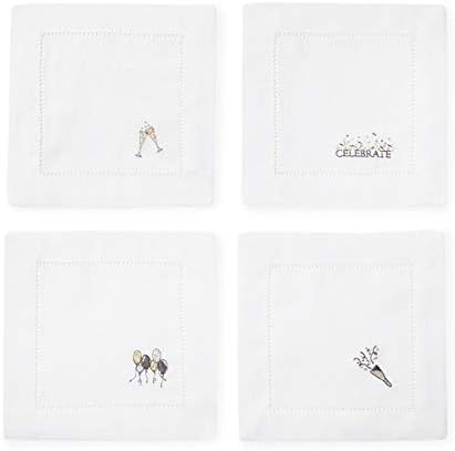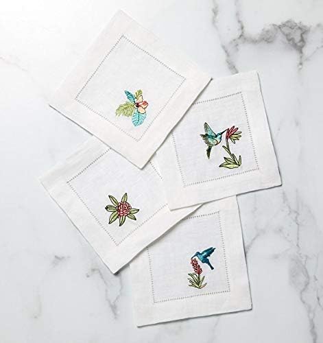 Inspired by scenes of nature in the tropics, these whimsical cocktail napkins feature flora and bird motifs embroidered against white hemstitched linen -- adding a fun and lively touch to spring and summertime gatherings. Machine wash cold on gentle cycle. Do not use bleach or fabric softener. Line dry or tumble dry low heat. Press on reverse.