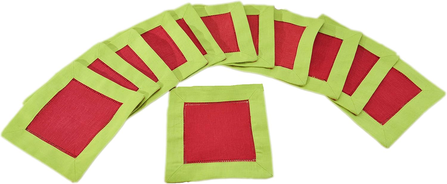 Christmas Red and Green color cocktail napkins. (6x6"Square). 12 pieces package. Linen/Cotton. Heavy weight linen cotton fabric.