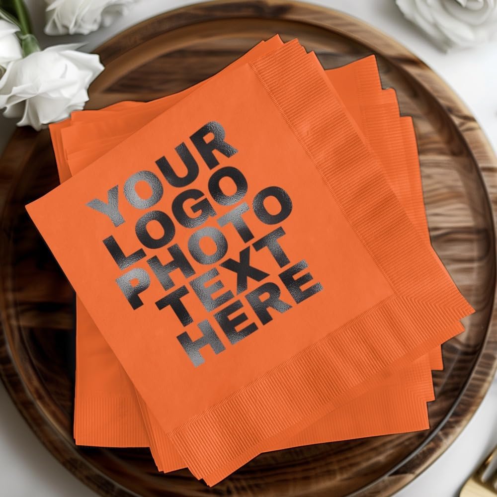 Elevate Your Event with Personalized Foil Stamped Cocktail Napkins Make every celebration feel custom and elegant with our personalized cocktail napkins featuring your name, monogram, or logo in shimmering foil-stamped design. Perfect for weddings, birthdays, bachelorette parties, baby showers, and business events, these custom cocktail napkins add a stylish touch to your drinks and decor. Crafted from premium 3-ply tissue, each napkin features an embossed edge for a polished and durable finish. Choose from 19 napkin colors and personalize your order with 6 beautiful foil color options – including Gold, Silver, Rose Gold, Copper, Matte Black, and Matte White. Whether you're ordering monogrammed cocktail napkins, custom wedding napkins, or branded napkins for your bar or business, our foil-stamped napkins make a lasting impression. - Foil Stamped Custom Napkins for Cocktail Hour - Add a Name, Monogram, Logo, or Special Message - Great for Weddings, Parties, Events, and Bars - Disposable Yet Elegant – Made from 3-Ply Tissue - 19 Napkin Colors + 6 Foil Choices to Match Your Theme