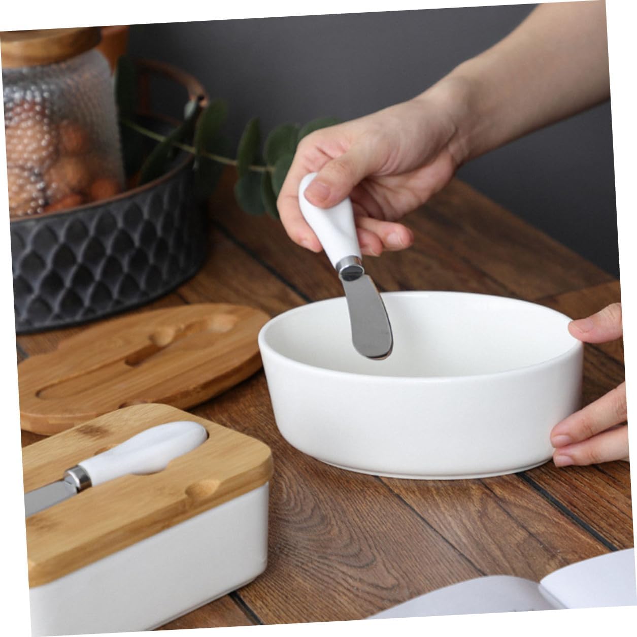 Package List 1 x Cutter 1 1 x Lid Characteristics -Color:Multi -Product Info:Butter knife ceramic disc set -Material:Ceramic, -Size:17.40X12.00X7.40cm/6.84X4.72X2.91in - Our Butter Box is made of reliable and sturdy materials, safe and , with excellent texture. - The sealed lid keeps butter fresh in the refrigerator without mixing other foods’ taste butter container. - Big enough to slice butter, easy to use and wash with elegant design bring you a good mood and enjoy delicious food airtight butter dish. - Our Butter Box is used for cutting butter storage, and can also be stored in the refrigerator for easily cooking and dining butter holder. - The Butter Box is large enough to fit various shapes of butter sticks. A great tool for slicing and storing butter butter preservation dish.Goods Descriptionbutter jar with lid Are you looking for a professional, yet Butter Storage Box? Are you in search of a sturdy, trustworthy tool that can do multiple jobs at once? , ! Our Butter Storage Box will be one of the for you