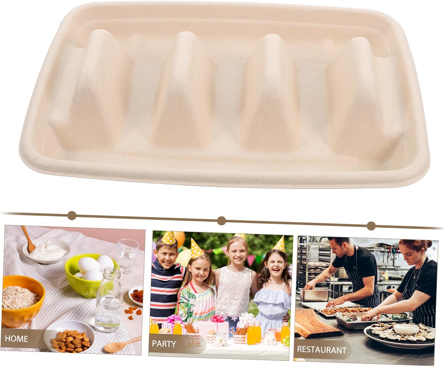 Package List Disposable Taco Holders Characteristics -Sufficient quantity: ideal for large parties, the set provides enough trays to meet your daily needs and accommodate multiple guests snack dish. -Convenient and practical: disposable taco holders make setting up a taco for parties effortless, eliminating the hassle of cleaning and storage sushi stand. -Product Info:Taco rack -Size:22.00X15.00X2.50cm/8.65X5.89X0.98in taco shell plate -Multipurpose use: besides tacos, these trays can hold various ingredients , salad, rice, or any other toppings, enhancing your dining experience street taco holders. -Material:Pulp fiber taco shells harder -Color:Beige dessert serving tray - material: made from pulp fiber, these taco plates are sturdy and have a strong loadbearing capacity, ensuring they won't break easily plastic taco holder. -Versatile design: the taco tray with three dividers can hold various taco flavors simultaneously, catering to different taste preferences wave shape tray.Goods Descriptionsushi display rack Elevate your party experience with our disposable Taco serving trays.sushi board Made from pulp fiber, they are sturdy and can hold various toppings , salad, and rice.taco plates with dividers ideal for large gatherings, these trays eliminate the hassle of cleaning and storage, making your event seamless and enjoyable.walking taco chip bags Designed with three dividers, these trays allow you to serve multiple flavors of Tacos simultaneously, catering to diverse taste preferences