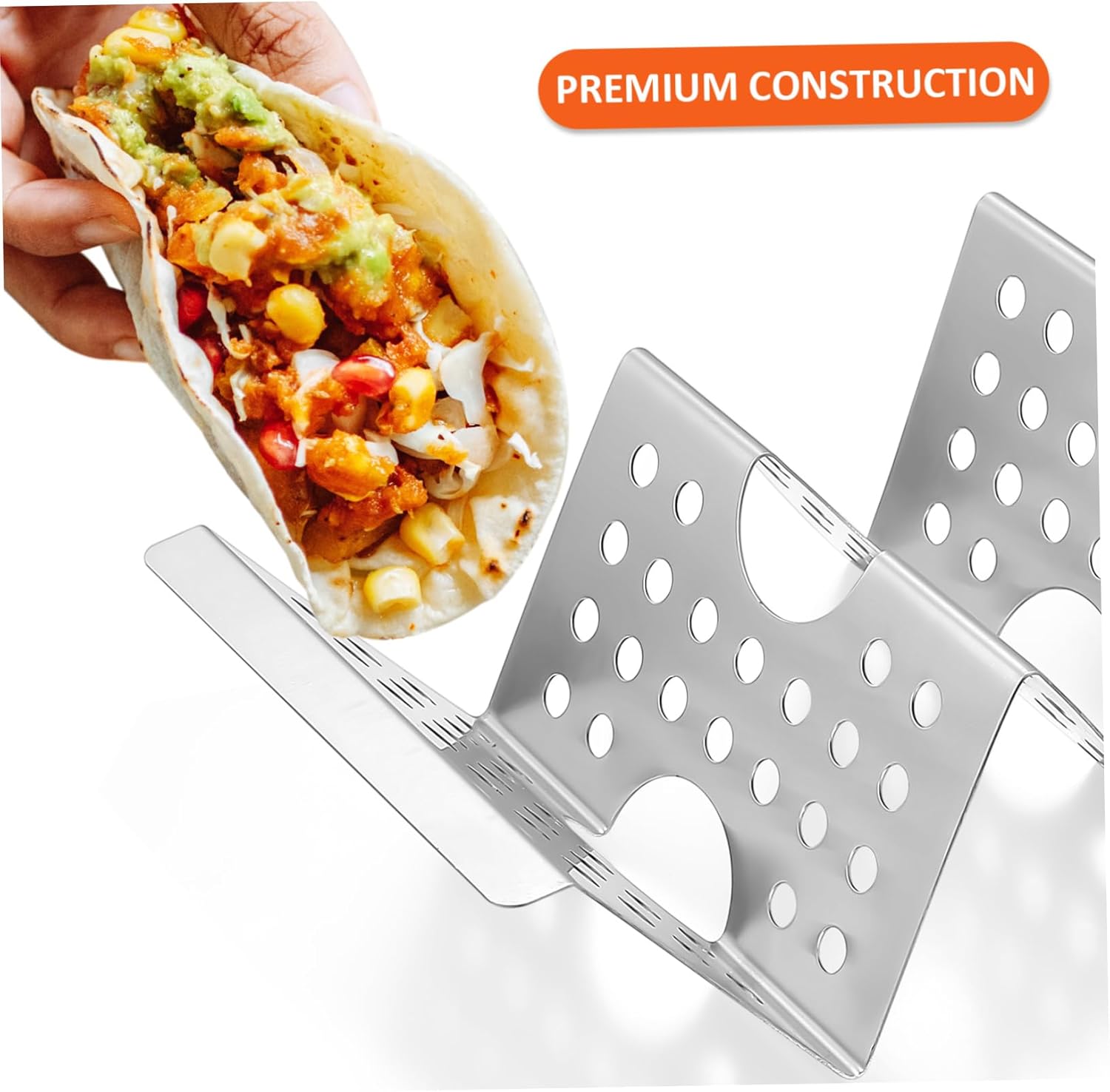 Package List 8 x Taco Holders Characteristics -Size: About21.70X10.00X5.00cm/8.53X3.93X1.97inches taco rack with handle -Color:Silver metal taco rack -Material: Stainless steel stainless steel taco holder -There are many small round holes on eachside of the taco stands, which can heat up rapidly pancake holder. - for hosting family gatherings,fast-moving restaurant kitchens, and holiday parties taco holder. -They will keep the tortillas upright, whether they are putting on plates or baking in the oven taco stands. metal taco holder -Taco holders can be used to placeburritos, tortillas, hot dog pancakes, and more food pancake stand. -Made of stainless steel material, which isvery strong and safe and will not bend or deform pancake holder Goods Descriptiondecorative taco rack Whether you're having a party or simply cooking dinner,your delicious Mexican-style food will look portioned.pancake holder The taco holders are made of stainlesssteel, sturdy and wear-resistant.taco holder Designed to keep your food upright andbeautifully presented.taco tray with handle The weldingprocess is stable and strong