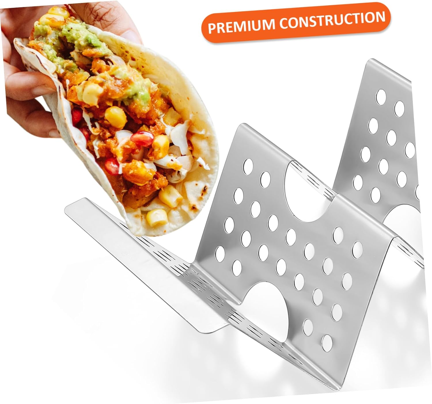 Package Include 8 x Taco Holders Characteristics -Size: About21.70X10.00X5.00cm/8.53X3.93X1.97inches pancake stand -Material: Stainless steel pancake holder -Color:Silver with handle -Compact size, metal taco holder makes iteasy to stack compact storage stainless steel taco holders. -The taco racks hold the tortillavertically for easy filling and serving taco rack with handle. -Made of high-end stainless steel material,strong and practical, kitchen taco holder. -Suitable for family gatherings, holidayparties, restaurants, kitchens, and more decorative taco rack. taco holder plate -Pancake racks keep tortillas uprightwithout falling and sliding stainless steel taco holder.Goods Informationtaco holder plate Thick non-slipbase, stable, not easy to break.taco tray with handle Suitable forfamily gatherings, holiday parties, restaurants, kitchens.pancake stand Can be used to hold burritos, sandwiches, hotdogs, pancakes, and more.taco tray Our item is a set of taco holders.burrito holder Made ofpremium stainless steel material, reliable for long-lasting use