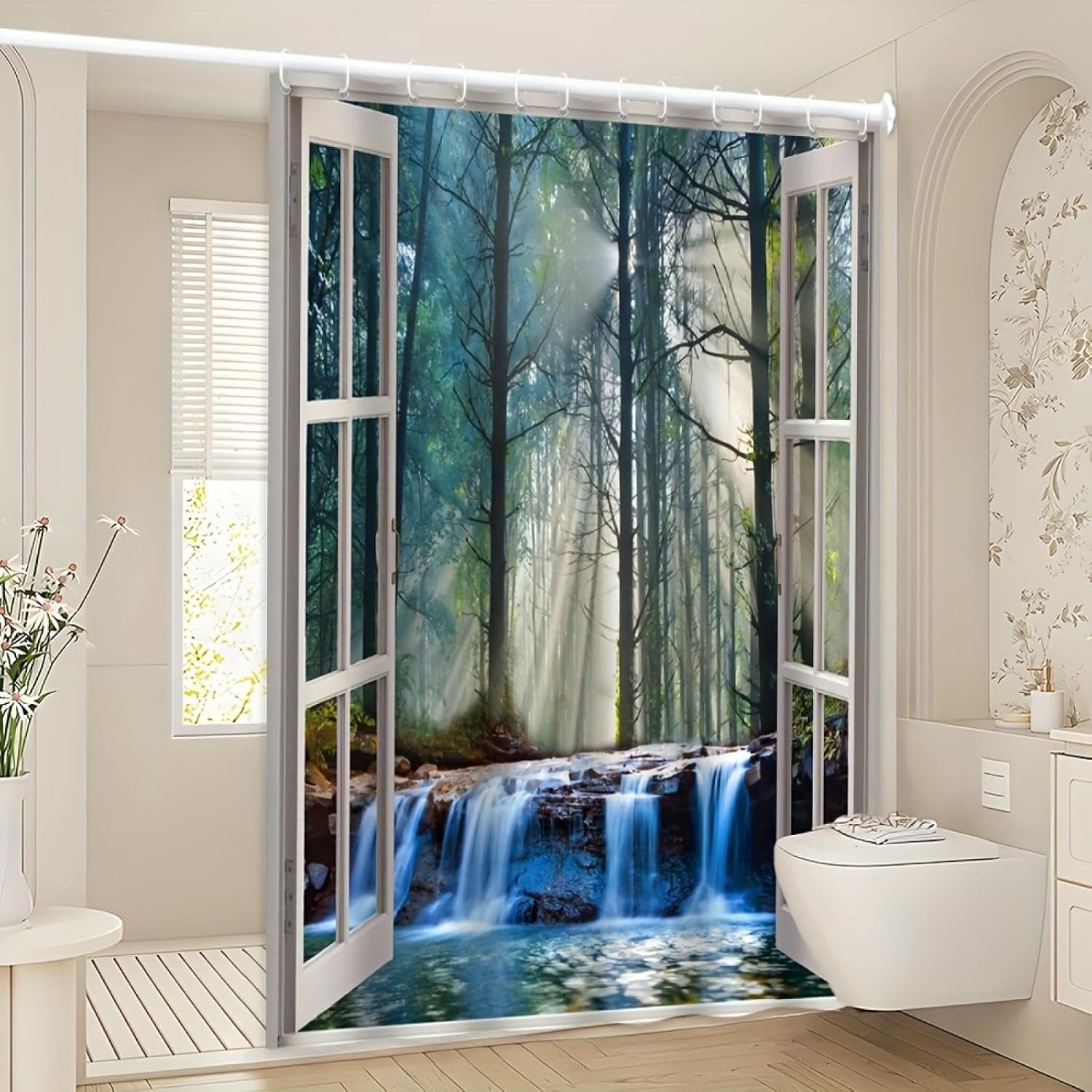 Why choose JGGXHM shower curtain?The shower curtain adopts high-definition pattern printing technology to ensure long-term use without fading. The beautiful and vivid patterns, clear and realistic printing to make your bathroom an ideal place to enjoy a happy bathing time.Easy Care: It's airy, light, soft, and machine-washable.Best Service: Just feel free to buy our shower curtain will make you feel satisfied.High-Quality Hooks: We provide 12 free hooks for you, which are easy to install, and give you the best shopping experience.Waterproof: Shower curtain is completely waterproof, can prevent splashing of water from the bathtub during bathing. so you can experience your bathing process with peace of mind and comfort.Extensive Experience: JGGXHM is a shower curtain manufacturer with 20 years of experience, and we use the latest "3D Printing" process to make the shower curtain more artistic.Multiple StylesOur bathroom curtains come in a wide variety of styles (fashionable, minimalist, vintage, rustic, farmhouse) to complement any bathroom perfectly. Cute elements and fun patterns combine for a perfect visual treat.WATERPROOF/PRIVATEWaterproof design is adopted so that the water drops never get to cling on the fabric. This shower curtains are not see-through but can let light through, it protects your privacy while giving a nice light to your bathroom.Multipurpose Curtain:Beautiful patterns add a elegant look to your bathroom. Ideal for your bathroom, hotel, dormitory, door curtain, bathroom window curtain, room partition curtain, dorm room curtain, wardrobe curtain, car curtain for travel, party backdrop, etc.PERFECT GIFTCloth shower curtain can be given as a gift to yourself and your family.