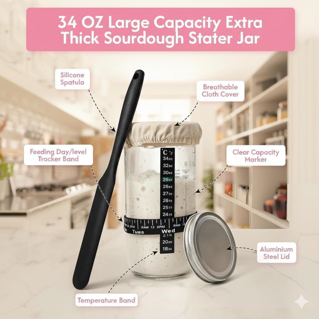 | Additional Features | A proper sourdough starter kit : Set includes 2 Oval Banneton Proofing Baskets with linen liners , 1 Non-Stick Silicone Baking Mat , 3 Kraft Bread Bags |