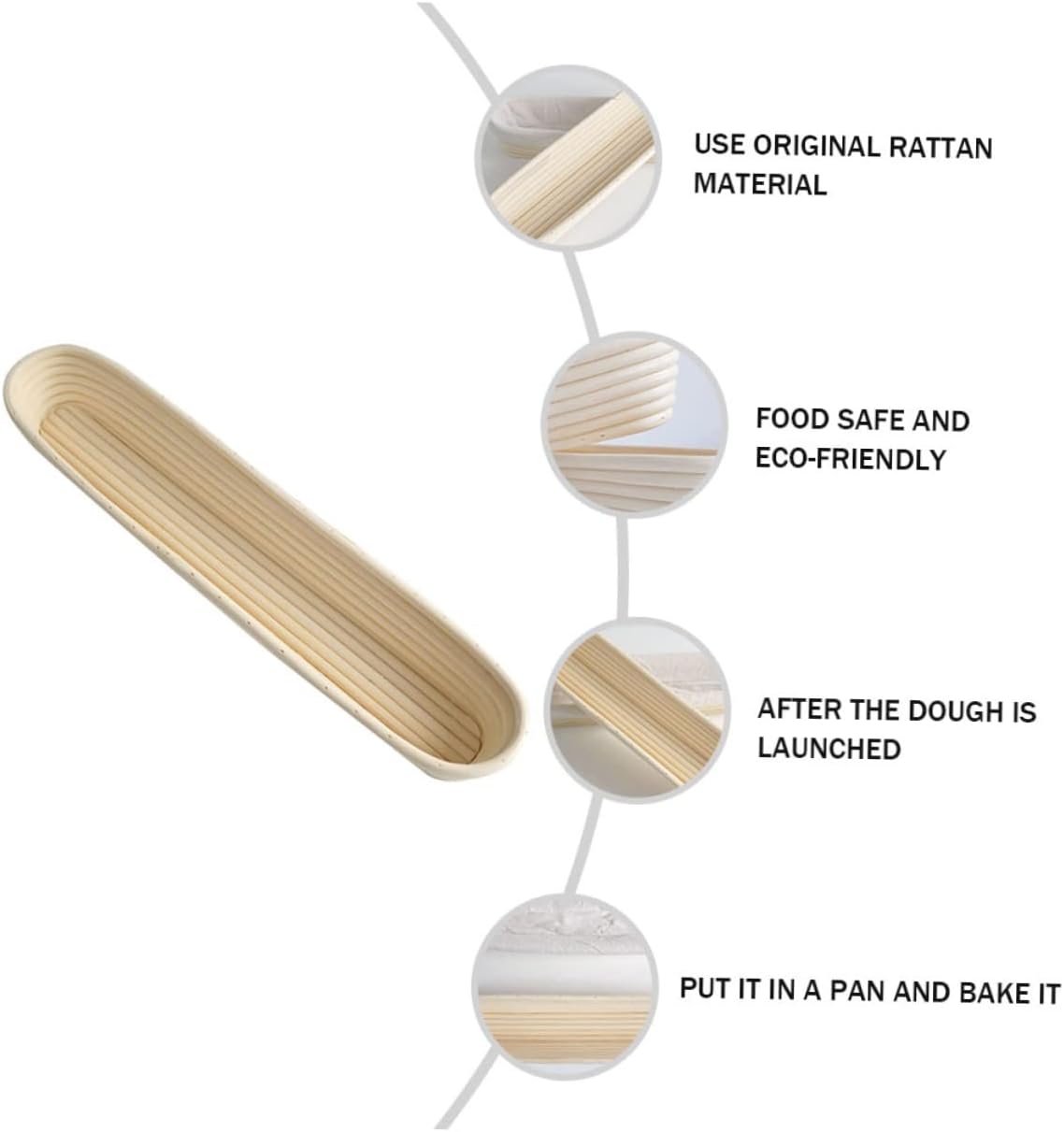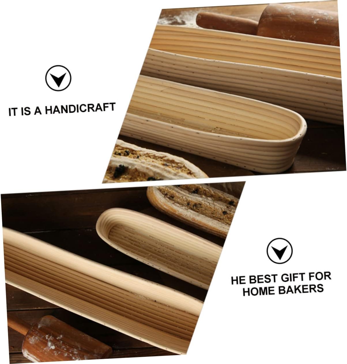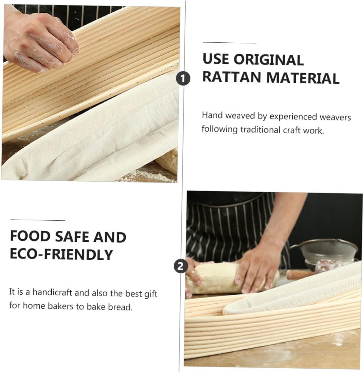 Package Include 2 x bread basket 2 x cloth cover Characteristics - Size: About 34.00X10.00X5.50cm/ 13.36X3.93X2.16inch Bread Proving Rattan Basket. - Material: Vine Dough Bread Proofing Basket. - Color: Beige Baking Accessory. - It can be cleaned and reused. Wash by hand with warm water and keep dry after cleaning Bread Basket. - A great family and friends who like making bread Bread Baking Tool. - Just sprinkle flour in the proofing basket, put the kneaded dough in, and wait for the dough to rise Basket for Baking. - Both experienced bakers and novices at home can use this bread basket Baking Basket. - making all kinds of bread, it takes time to rise or expand Basket. - The bread basket is made of material, which is and Baking Tool.Goods DescriptionBread Proving Rattan Basket The basket is beautifully handmade from vine.Basket for Baking Our bread basket helps your bread loaves keep their shape and structure through their , thus making beautiful, tasty bread without splinters or chemical smell