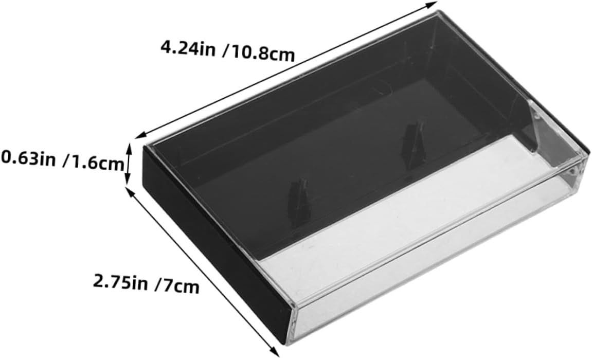 Package List 20 x empty cassette case Features -Classic design: with our vintage cassette tape storage case, a addition to any retro collection plastic cassette tape cases - present choice: delight music enthusiasts with this distinctive and practical present, ideal for birthdays, holidays, or any special occasion tape organizer carry case -Material:Plastic plastic cassette cases -Generous set: you'll have ample storage to keep your entire cassette collection organized and easily accessible cassette holders -Durable: constructed from material, this case offers protection and an elegant look cassette tape holders -Size:10.80X7.00X1.60cm/4.24X2.75X0.63in tape holder organizer -Versatile organizer: keep your tapes neatly arranged and protected with this multifunctional storage box music cassette boxes -Color:Black edge tape holderGoods Descriptionplastic cassette cases This cassette tape organizer is the for keeping your audio tapes in order.cassette holders storage for home The clear plastic construction allows you to easily see and access your tapes, while the durable design ensures they are protected from damage.cassette tape case Ideal for both home and professional use, it helps you maintain a clean and organized space