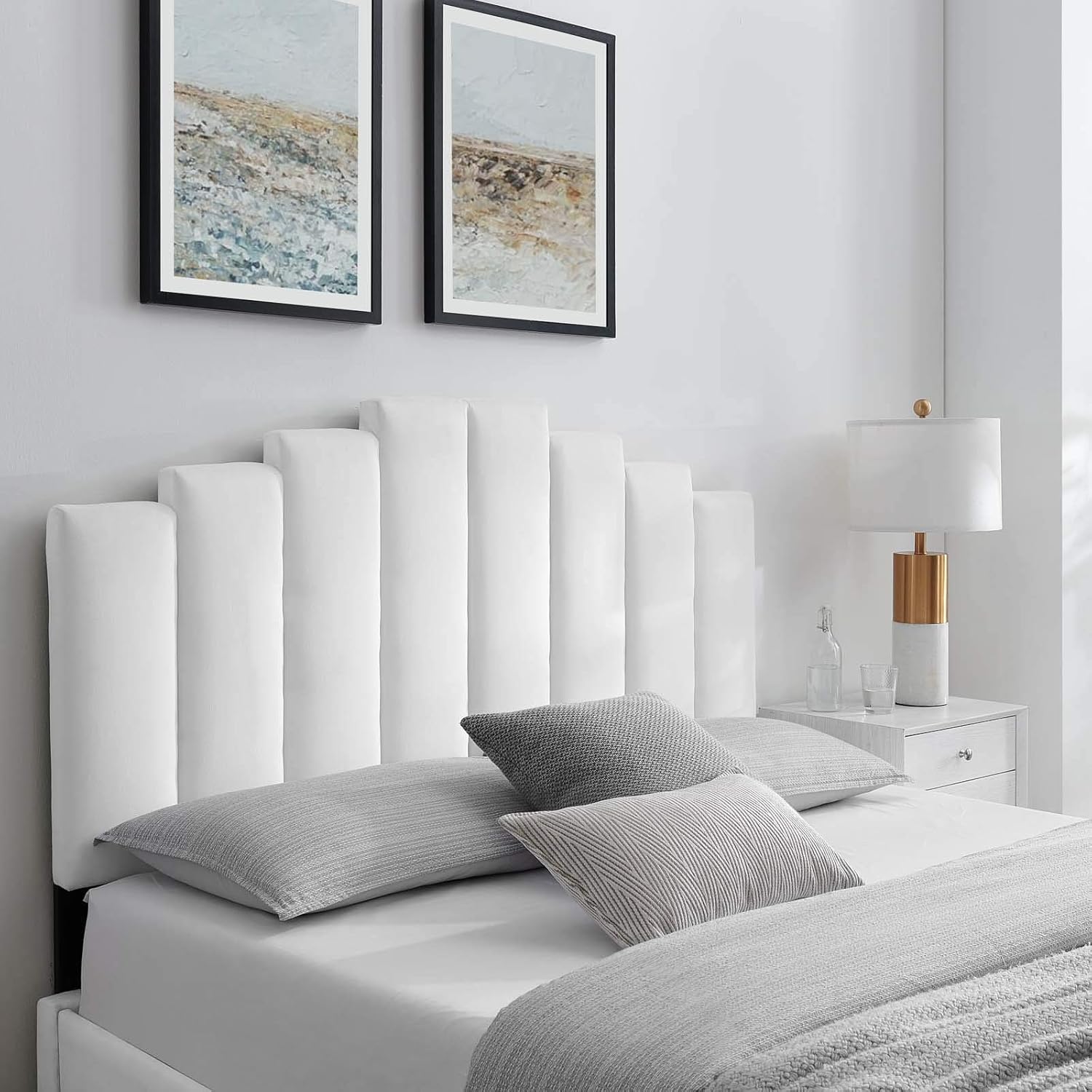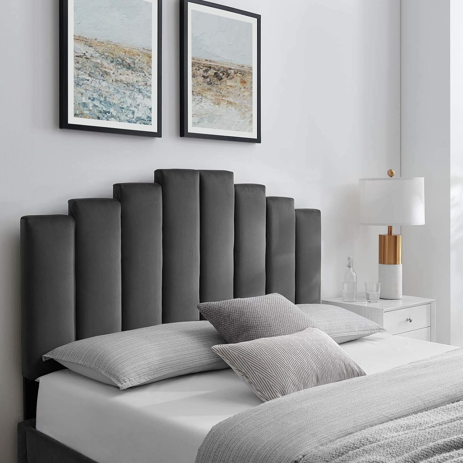 Refresh a guest bedroom, kid's room, or college dorm with the luxurious style of the Noelle Performance Velvet Twin Headboard. Abounding in glam deco style, this twin headboard features a modern twist on classic channel tufting with velvety panels ascending upwards in an arching design. This twin headboard comes upholstered in soft, stain-resistant performance velvet upholstery that grants rich texture to the elegant form. With a sturdy construction and adjustable height, this headboard for twin beds is densely padded with foam to create a comfortable spot to sit back and relax while reading, lounging, or watching TV in bed.