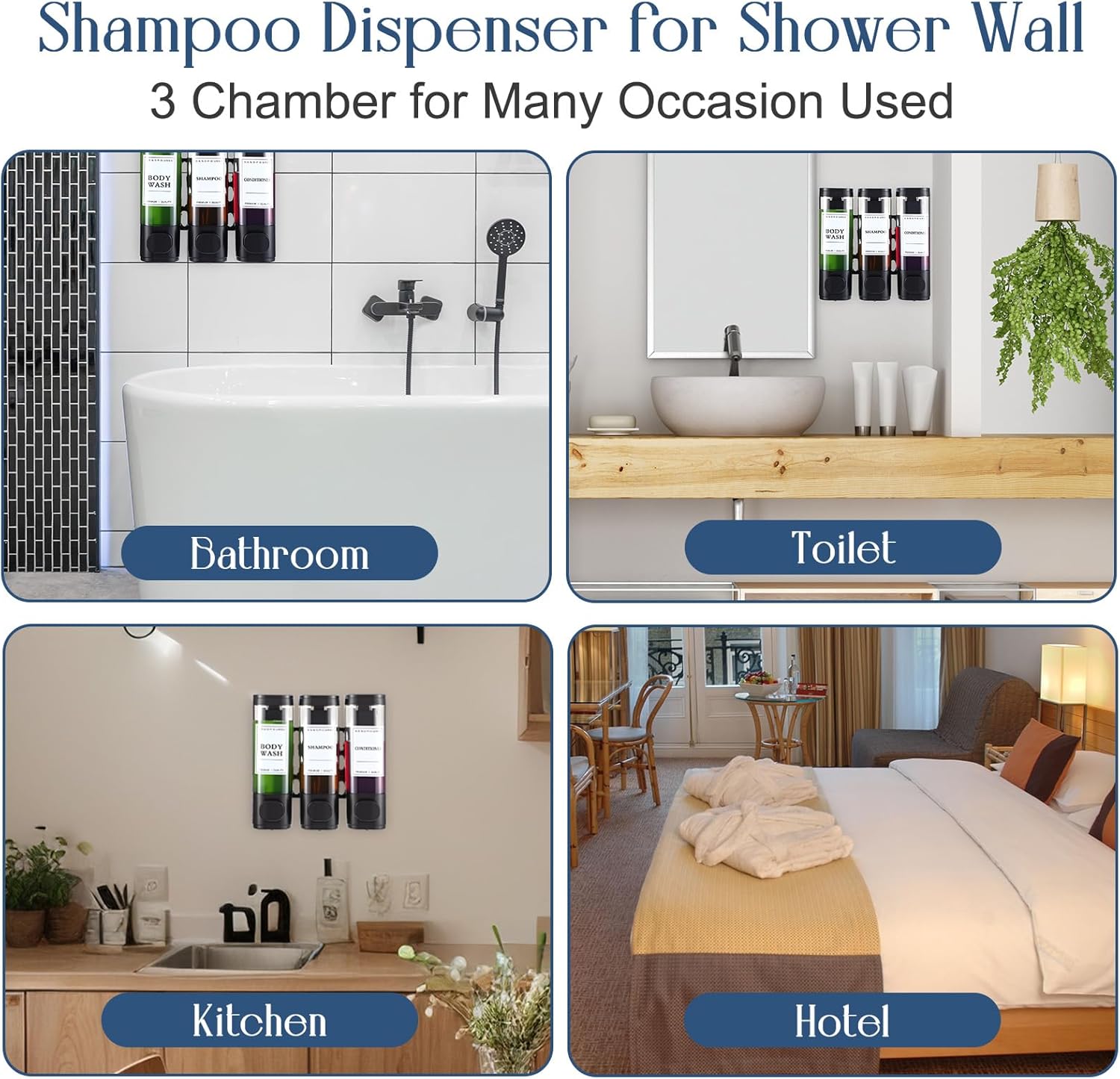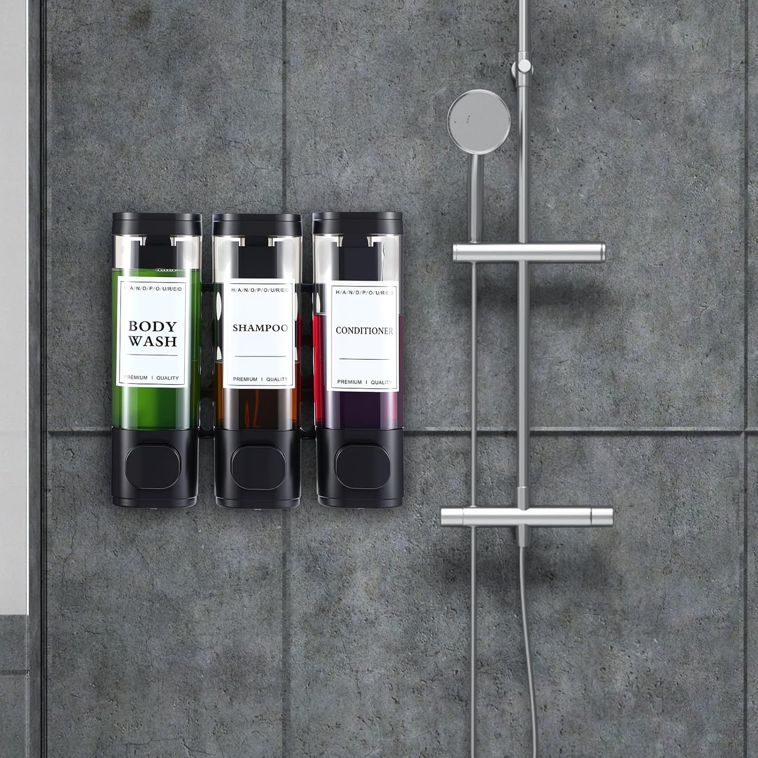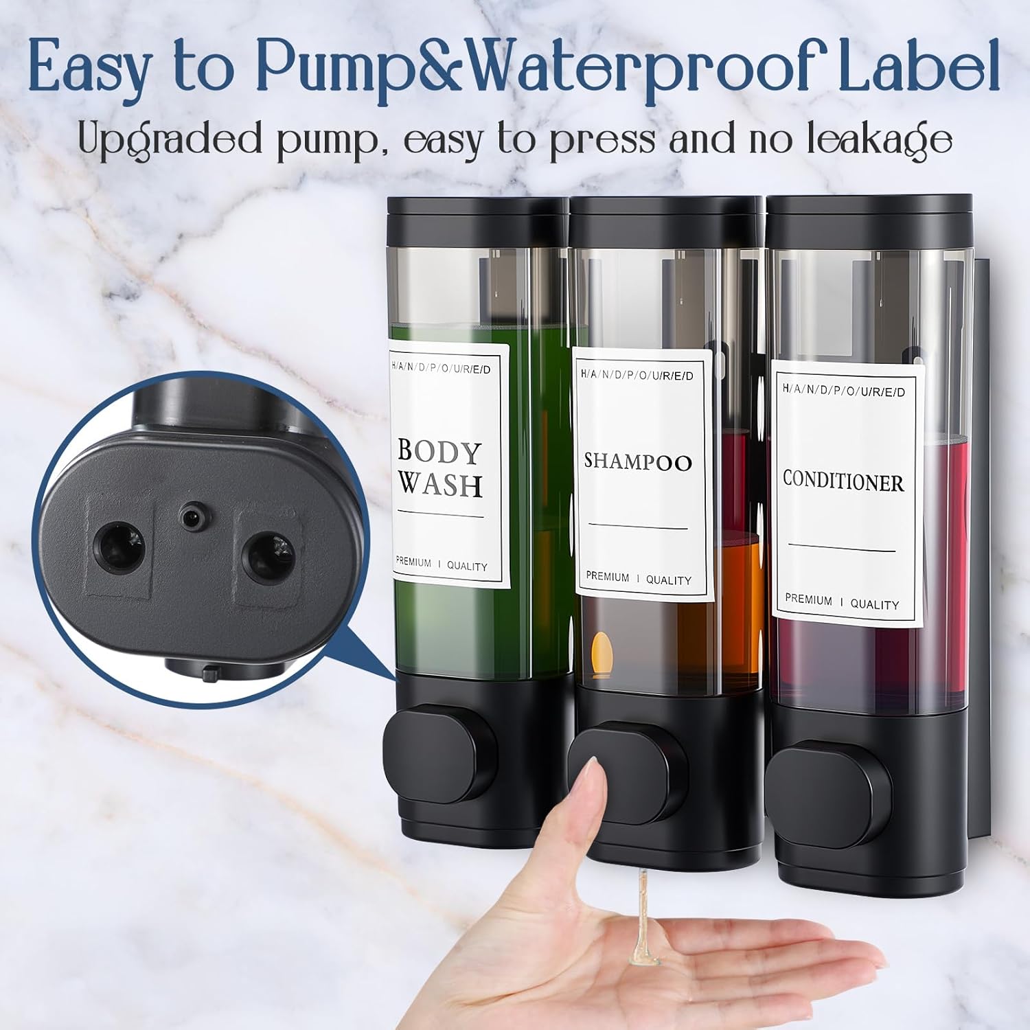 Features: Smooth & Leak-Proof Pump: The shower body wash dispenser features an oversized, coated button for effortless pressing. The manual pump ensures controlled dispensing without dripping, keeping your shower area clean and mess-free. Easy Maintenance & Refilling: The shower dispensers-style design allows quick top-filling without removing the unit. The wide-mouth bottles make refilling shampoo, conditioner, or body wash effortless. Smooth surfaces ensure easy cleaning with just a wipe. Specifications: Material: aBS plastic Color: transparent black Size: 300 ml/12.85 US Package includes: 6 x Shower Soap Dispensers Notes: Manual measurement, please allow slight errors on size. The color may exist a slight difference due to different screen displays