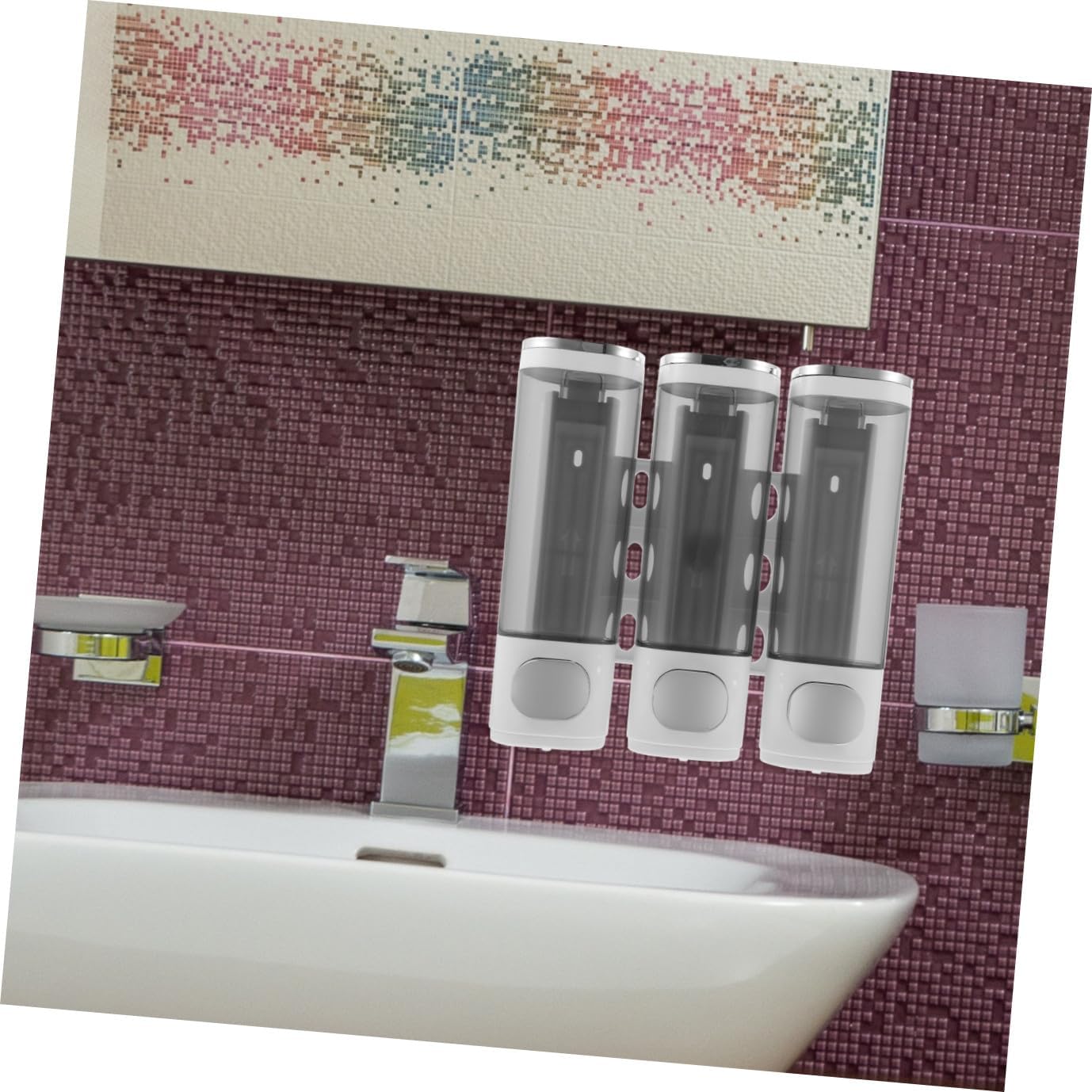 Package List 1 x 3-in-1 soap dispenser 4 x install screws 4 x expansion bolts Features -Size:21.50X21.00X7.00cm/8.45X8.25X2.75in -Material:ABS -Product Info:Soap liquid box -Color:White - You can give it as a gift for housewarming, Christmas, birthday, Thanksgiving, etc shampoo pump dispenser. - Suitable for the kitchen, dining room, bathroom and office, to ensure your clean shower soap dispensers. - Its capacity is large enough for long time use. No dripping or trailing, no waste soap shower soap dispenser. - Offering you with good hand-washing or shower bath experience, a must have for soap dispenser for shower. - The shower dispenser is made of anti drop ABS material, super sturdy and , not easily deformed. Owning the strong wear and break resistance ability, very practical, with excellent texture.Goods Descriptionsoap dispenser no drill Use with confidence.shower dispenser no is made of ABS for safe use.liquid dispenser This is a wall-mounted liquid Soap Dispenser.bathroom countertop soap dispenser Fine workmanship and sturdy structure, the shower-gel box is not easy to fall off.liquid soap dispenser Perfect for home, bathroom, toilet, hotel etc
