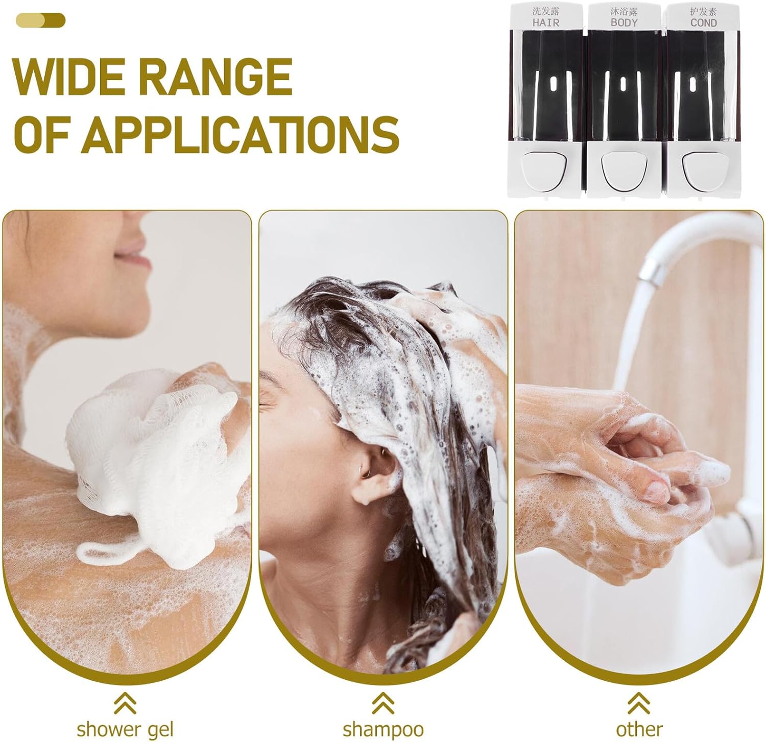 Package List 1 x soap dispenser (3- style) Characteristics - Everyday Use: Convenient three-head design for family use. Space-saving wall-mounted design shampoo pump dispenser -Size:19.00X17.50X8.00cm/7.47X6.88X3.14in - Clear design: Transparent material for easy monitoring of liquid levels. Easy-to-use liquid dispenser -Product Info:Soap dispenser shampoo box - Material: Easy to operate and to install with the simple structure, to provide you with more convenience -Color:Multi - Multi-occasion Use: The soap dispenser bottle has wide application, can be used in homes, restaurants, shopping malls, etc bathroom soap dispenser -Material:ABS -Capacity: Totally 1050 ml shower gel dispenser - Material: Made of ABS material, this practical soap dispenser bottle is very sturdy and safe to useGoods Descriptionshower soap dispenser Are you looking for bathroom shampoo dispenser? Are you looking for a professional, yet reasonable soap dispenser replacement bottle? Are you in search of a sturdy, trustworthy replacement bottle that can do multiple jobs at once? , ! Our soap dispenser replacement bottle must meet your needs, this soap dispenser tray is one of the great choices for you