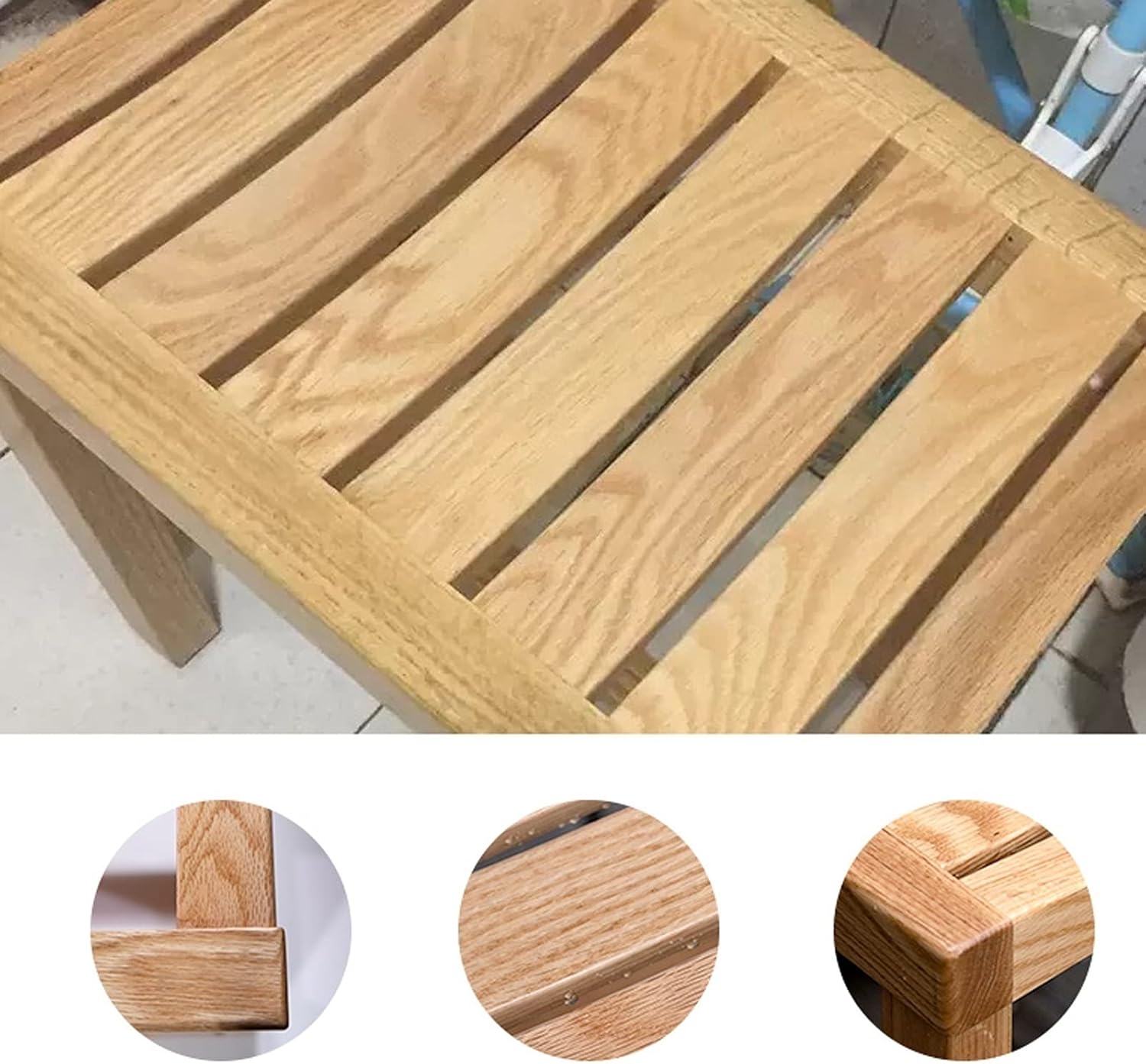 Are you looking for a shower chair that allows you to relax in the bathroom?The surface of our shower stool is coated with safety paint, which has better waterproof effect and longer service life. It can bear more than 250kg and is durable.In addition, compact design is suitable for small spaces, and you can use it in almost any place such as the living room, bedroom, balcony, and outdoor garden , deck, lawn, patio. Also serves as shoe bench, storage shelf, plant stand, Etc.