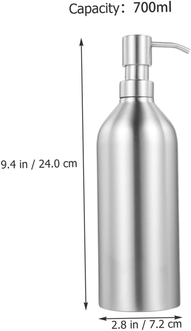 Package List 2 x Dispenser Characteristics -Material:Stainless Steel Pump Shampoo Bottle -Capacity: 700ml Bottle with Pump -Size:24.00X7.20X7.20cm/9.43X2.83X2.83in Bathroom Lotion Bottle -Color:Silver Dispenser with Pump - Just press the pump and it dispenses the right amount of for your needs Lotion Bottle. - Made of reliable material, the dispenser pump bottle has a smooth texture, easy to clean, strong and Press Pump Bottle. -The pump head will not deform and is easy to press, which is sturdy and convenient to use Empty Shampoo Dispenser. - The simple color is easy to match the decoration style of your bathroom or kitchen countertop Kitchen Dispenser. - It can be used for holding liquid , dish , lotion, aromatherapy essential oil blends, shampoo, etc Bottle.Goods Information Dispenser It can be used to hold your shampoo, liquid , shower gel, essence etc.Refillable Hand Dispenser The pump head of the bottle is ergonomic, easy to press, which is simple and convenient to use.Home Bottle This dispenser bottle is made from stainless steel material for and refillable use. Dispenser Bathroom for home, bathroom, toilet, hotel etc