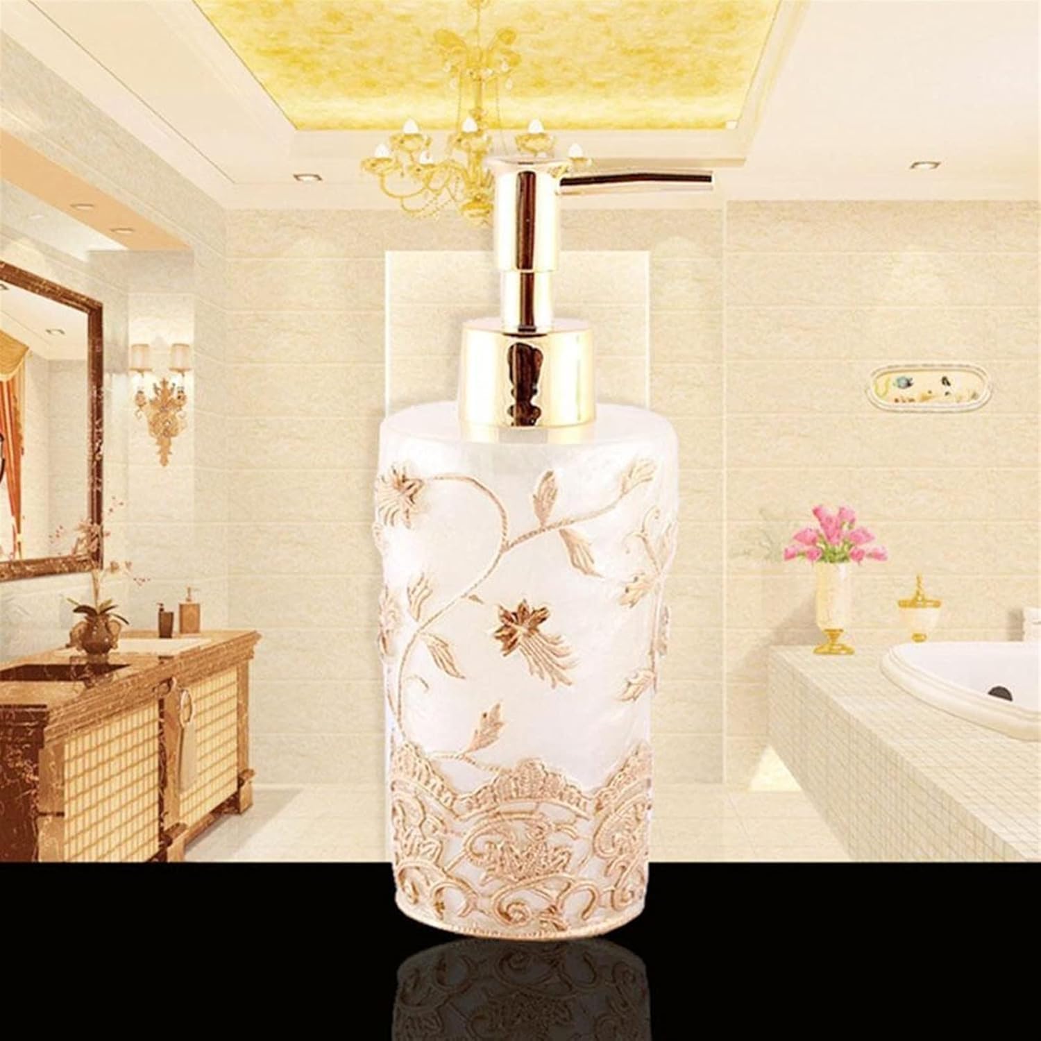 MULTIPURPOSE: The soap dispenser can be used for dish soap, hand soap, liquid soap, lotion, shampoo, shower gel, mouthwash, massage oil, essential oils and more. Name: Soap dispenser Material: Resin Scope of application: bathroom, hotel, kitchen, etc. This product can be reused Notice: Except for the main products shown in the main image, other items are for display only and do not include other items. Due to different colors of lights, monitors and individuals, there will be a color difference between the actual product and the photo, please refer to the actual product The above data is for reference only, the size is manually measured, each variable may be different, please refer to the actual product, thank you. If you find any problems with our products, please feel free to contact us via email, we will solve the problem as soon as possible.