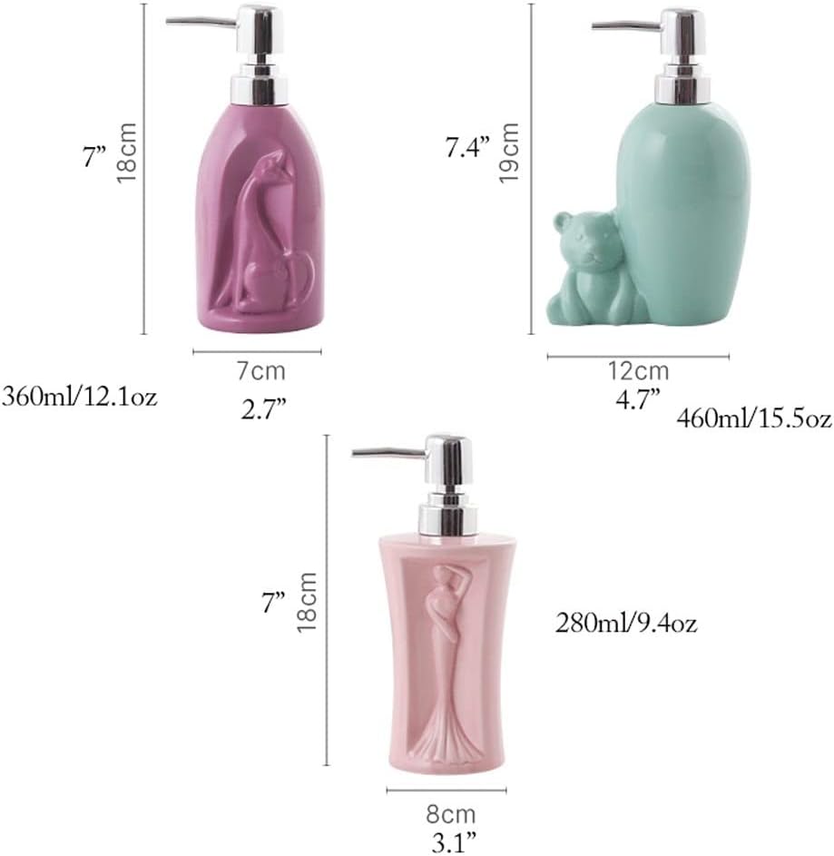 Soap dispenser features: quantitative hand soap out, avoid contact can use soap to clean hands and other hygiene, very convenient and hygienic. Product name: soap dispenser Material: bottle body: ceramic, pump head: plastic Cat Capacity: 360ml/12.1oz Beauty Capacity: 280ml/9.4oz Capacity: 460ml/15.5oz Color: green, pink, purple, brown Products include: Soap Dispenser*1 Note: Decorations (such as soap, toothbrush, toothpaste, trays, etc.) are not included. notes: 1. Please note that there may be a little color difference due to different monitors. Thanks! 2. Due to manual measurement, there may be some errors, please allow 2-3 cm difference. wish you a happy life.