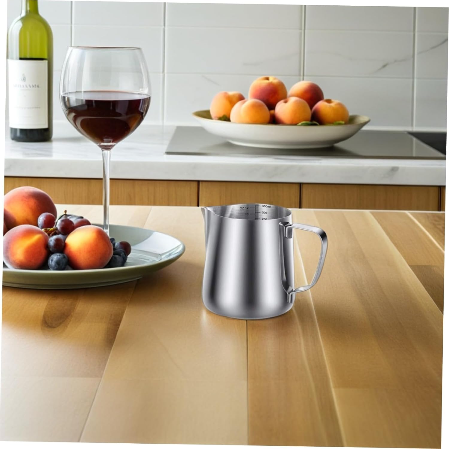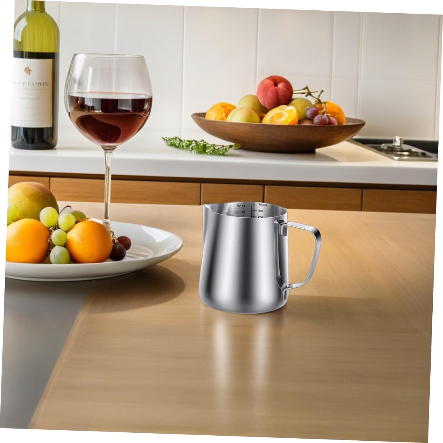 Package Include 1 x milk frothing cup ( 600ml) 1 x milk frothing cup ( 350ml) 2 x latte pens Features -Size:9.00X8.00X7.50cm/3.54X3.14X2.95in (350ml) stainless steel frothing pitcher -Premium stainless steel: crafted from sturdy stainless steel, this frothing pitcher resists rust and corrosion, ensuring reliable performance for years of coffee making enjoyment stainless steel frother -Artistic pouring control: the pointed spout is tailored for precise pouring, enabling you to create stunning latte art patterns with ease and confidence metal milk frother cup -Multipurpose design: perfect for frothing milk for cappuccinos, lattes, and macchiatos, this jug meets the demands of various coffee recipes effortlessly cappuccino milk jug -Color:Silver latte art pitcher -Product Info:Latte art cup set -Comfortable grip: the ergonomic handle provides a secure and comfortable hold, making it suitable for both professional coffee enthusiasts stainless steel frothing cup -Material:Stainless steel stainless steel milk jug cup -Size:12.00X11.00X9.00cm/4.72X4.32X3.54in (600ml) stainless steel steaming jug -Stylish addition: its modern and polished look complements any kitchen or café décor, making it a functional yet decorative accessory coffee frothing jugGoods Descriptionstainless steel pitcher Use it to steam milk for cappuccinos, lattes, and other espresso-based drinks, enhancing your coffee experience.steaming pitcher The ergonomic handle provides a comfortable grip, and the spout is designed for controlled pouring.milk steamer cup This stainless steel milk frothing jug is perfect for both professional coffee enthusiasts