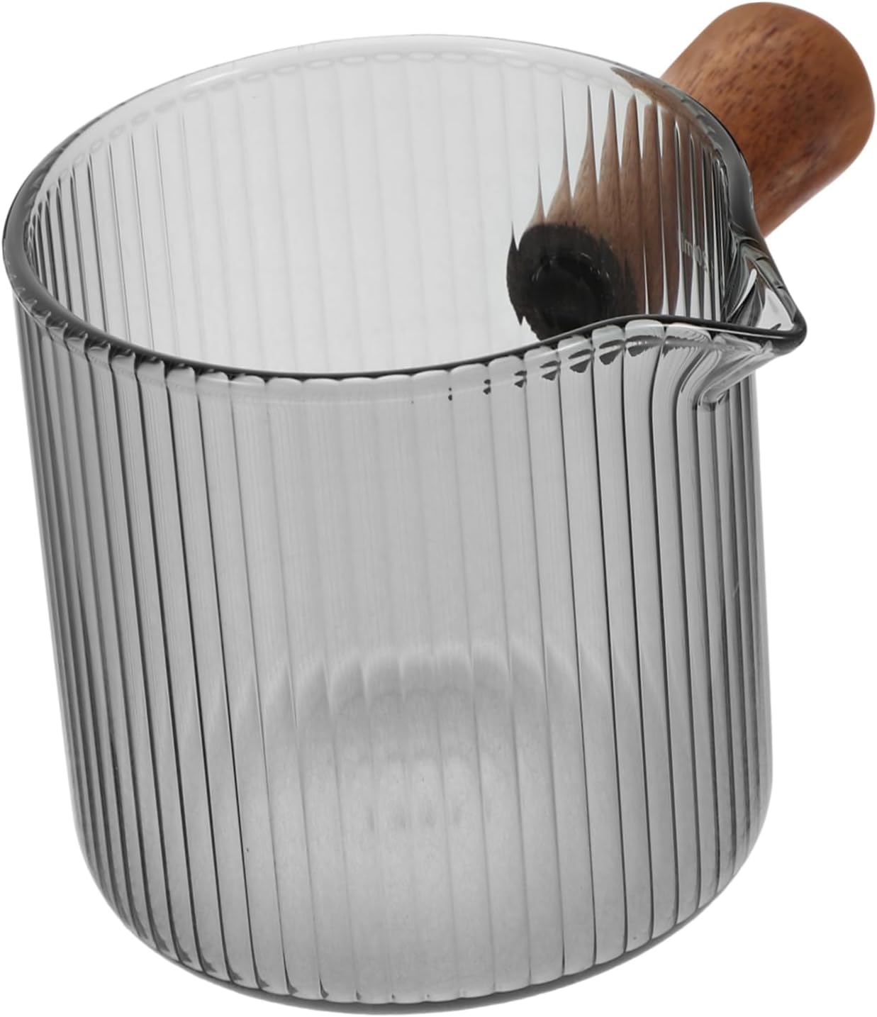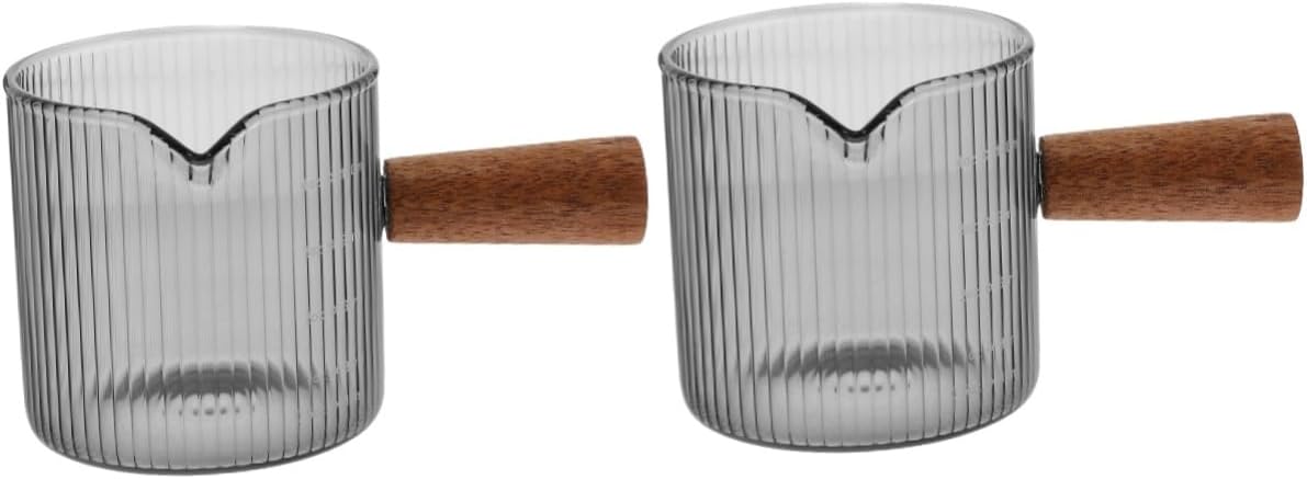 Package Include 5 x Espresso Measuring Cup Features -Material:Wood, glass art -Color:Light Grey coffee creamer container -Size:11.50X7.50X6.70cm/4.52X2.95X2.63in small pitcher -Capacity: 120ml pitcher with handle -This milk pitcher is ideal for coffee bars or restaurants, allowing you to create beautiful coffee artwork pitcher. -The cream pitcher's lightweight and compact size make it easy to use and carry, meeting your needs coffee milk pitcher. -Its special spout design makes it easy to pour and is suitable for storing milk, cream, espresso, and other liquids stainless. -The glass pitcher's wooden handle design makes it easy and comfortable to grip, saving you time and efforts milk pitcher. -Made of glass material, this milk pitcher is practical for long-term use and has a smooth surface that is easy to clean measuring cups and spoons set.Goods Descriptionsauce dispenser This compact milk pitcher is made of glass materials, ensuring its longevity and practicality.syrup for coffee An for various settings, including homes, restaurants, hotels, and more, and can be utilized to store milk, creamer, sauce, and other liquids.coffee syrup dispenser Its sophisticated design makes it effortless and convenient to use, and it can be easily cleaned and stored for repeated use