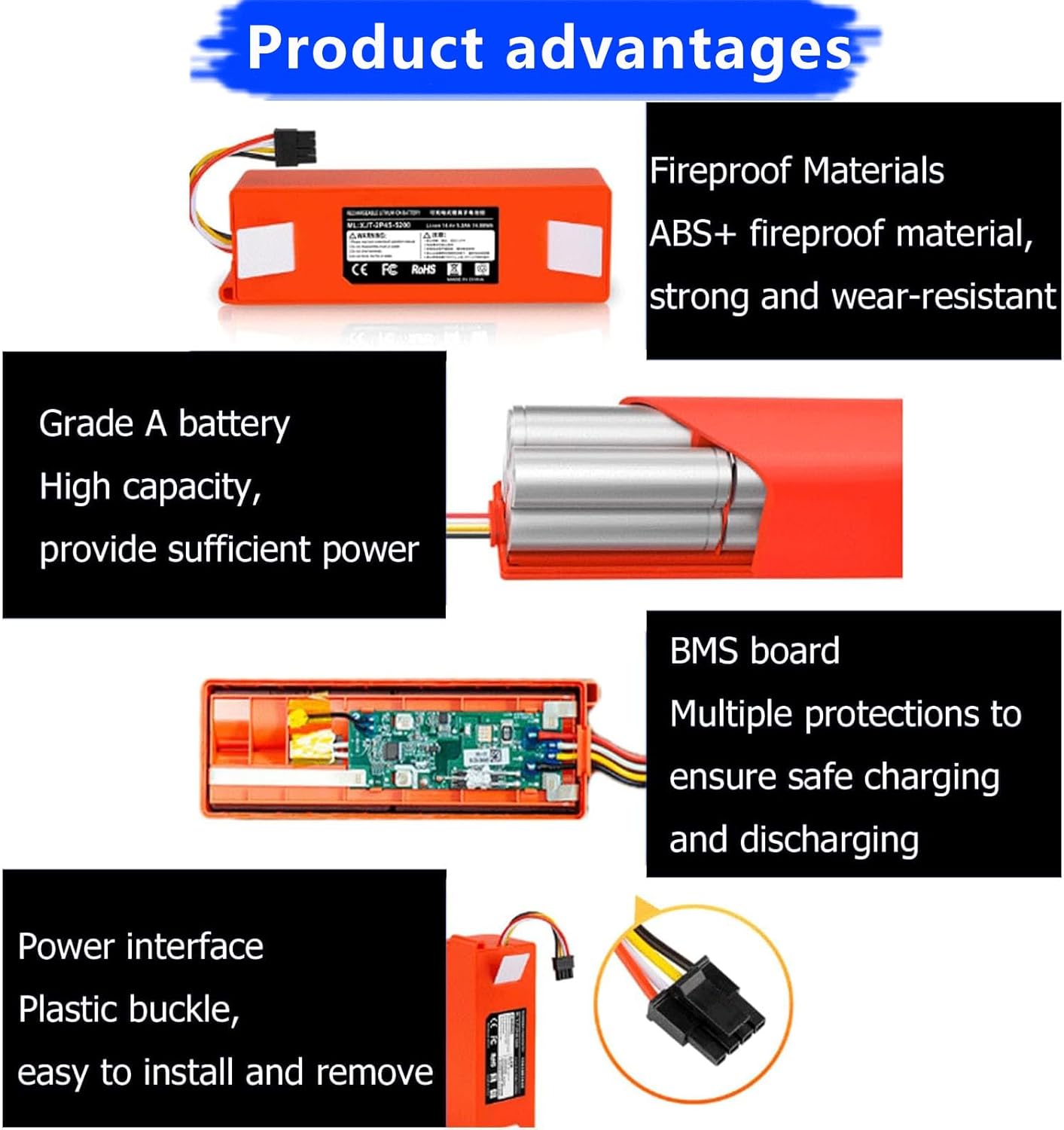 High Performance:With 5200mAh 6500mAh high capacity, cleans up to about 160 minutes run time per charge.Designed for deep discharge protection, perform up to 500 cycles of use.Specifications:Condition: 100% Brand New Replacement BatteryBattery type: lithium batteryBattery voltage: 14.4VBattery capacity: 5200mAh 6500mAhBattery size: 45*43*137mmBattery weight: about 1kgApplicable: Vacuum Cleaner Repalcement PartsMaterial: Orange Plastic shellPackage content:1* Li-ion Rechargeable batteryNote:1.Please make sure that the location where you plan to place the battery has enough space to accommodate the battery you choose.2.To prevent the battery from being overcharged or squeezed, and for your safety, it is recommended that you place the lithium battery in a box or bag to extend its normal service life.
