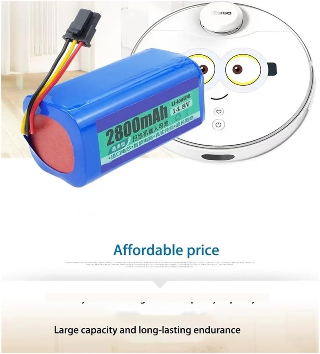 14.4V Batteries,Compatible For Qihoo,S5 S7 S7Pro T90 X9 3500mAh Robotic Vacuum Cleaner Replacement Batteries==========Nominal Capacity : 3400mAhWeight : 0.3KGVoltage : 14.4VApplication : Compatible For Qihoo,S5 S7 S7Pro T90 X9 3Model Number : Compatible For Qihoo,S5 S7 S7Pro T90 X9 3Type : Li-IonOrigin : Mainland ChinaCertification : CE,ULPower Battery Battery Rechargeable Battery Vacuum Cleaner Accessories Sweeper Parts Robot Accessories Lithium Battery Backup Battery High Capacity Battery Backup Power Supply Battery Pack Lithium-ion Battery Drive Battery Replacement BatteryWelcome dear customers! We will do our best to provide you with quality services and goods, and we can also provide a personalized service to tailor your shopping list to your needs. We hope you can pick the products you are satisfied with, and look forward to sharing more wonderful shopping experiences with you!!