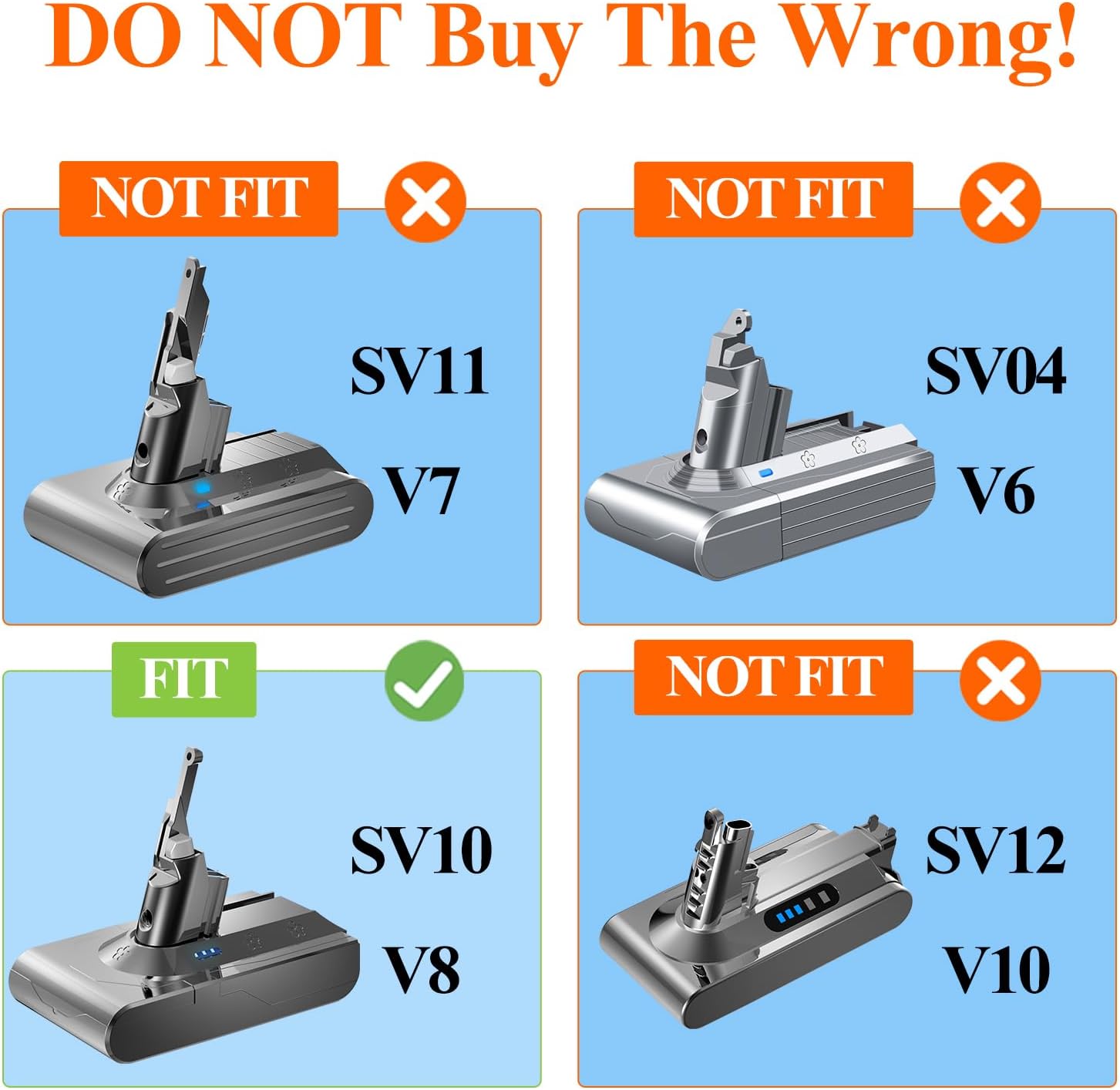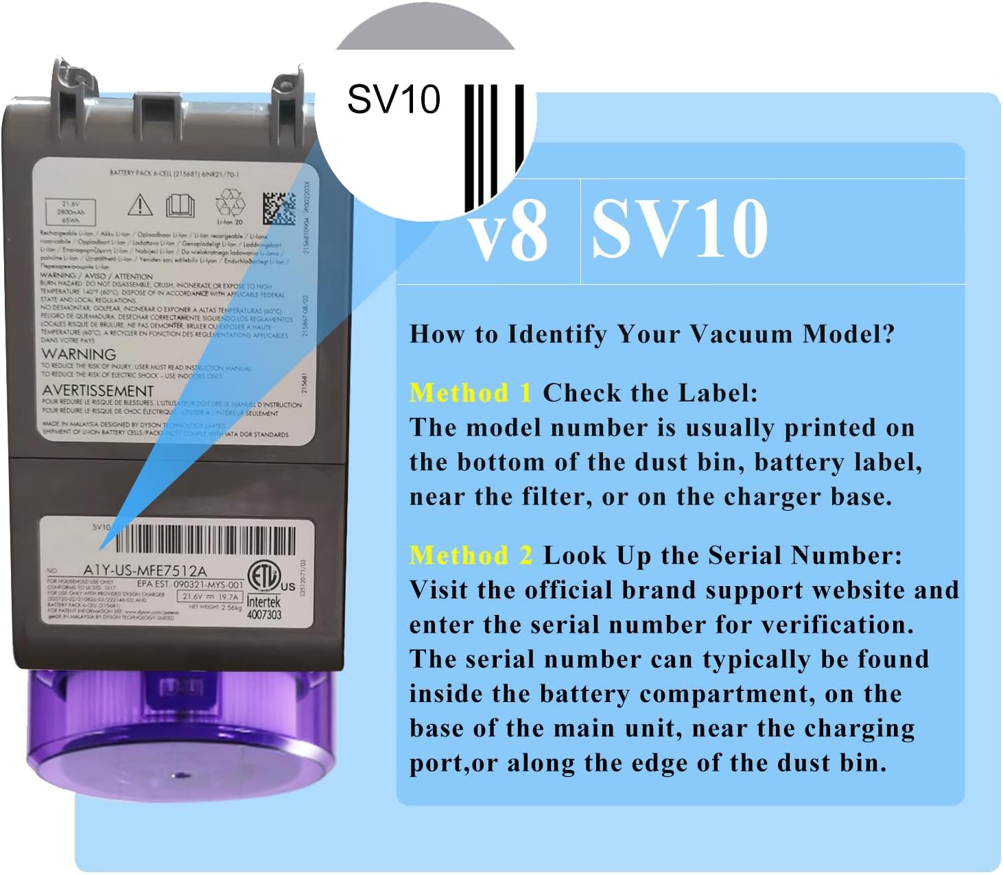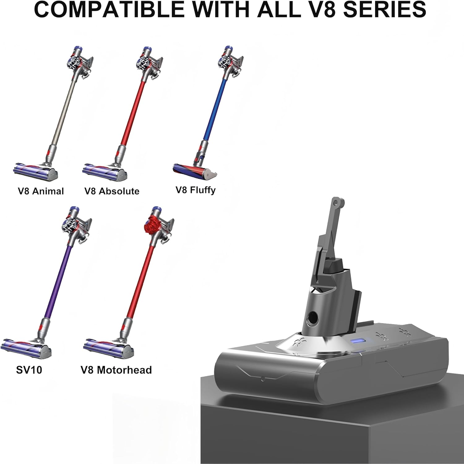 | Compatible Phone Models | New Upgraded 183.6Wh V8 SV10 Battery Compatible with Dyson V8 Vacuum Animal/Absolute/Motorhead/Fluffy Handheld Cordless Vacuum Cleaner Li-ion 215681 SV10 967834 05 Battery |