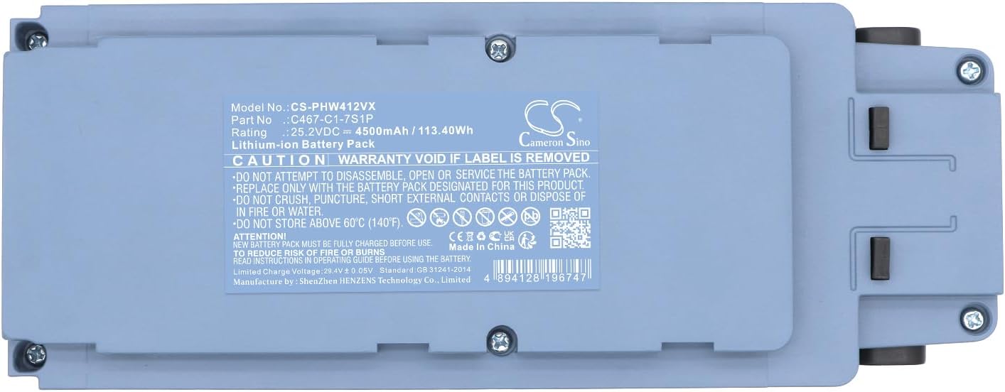 ❤Cameron SinoCameron Sino is a brand focusing on sell battery, we aim at supplying high-quality professional battery products.❤Fit Modelr for:Philips Cordless Wet & Dry 4000, XW4122, XW4122/82❤Part Number for:Philips C467-C1-7S1P❤Notice Before Purchase- Be carefully check the model number of your device and the part number of your original Battery to see if this Battery is compatible with your device.- A new battery will achieve its best performance after 2 or 3 complete cycles of charge & discharge.- When you install it, be sure the connector has been properly connected to your device.- Do not use low quality third-party adapter charger to charge your device, that will shorten the battery's life.Caution:1.Don't disassemble2.Don't dispose of in fire or water3.Don't store above 60 ℃(140℉)❤Contact usIf you have any questions or any issues when using our product, please send us a message, we will reply you as soon as possible.