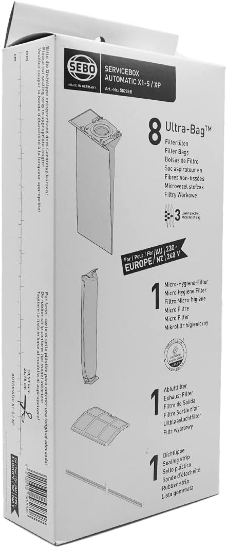 | Item Type Name | SEBO 5828ER Service Box with Sealing Strip for X Series Vacuum with 8 Filter Bags, Exhaust Filter, Electrostatic Microfilter and Sealing Strip |