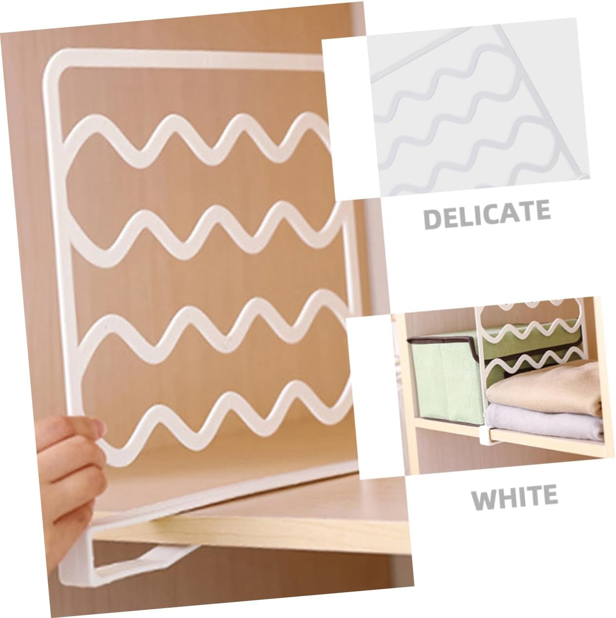 Package Include 10 dividers Features -Chic appearance: the simple yet chic design adds a modern touch to your wardrobe, enhancing its overall aesthetic and functionality clear shelf dividers - setup: the nodrill design means you can set up these dividers without any tools, making the installation process closet shelf organizers and storage -Color:White shelf separators in closet - build: made with durable materials, these dividers are designed to withstand daily use and provide longlasting performance towel organizer for closet -Material:PP closet dividers for clothes -Size:57.00X51.00X2.30cm/22.40X20.04X0.90in handbag storage organizer -Adjustable dimensions: the adjustable width feature ensures that these dividers can fit a variety of wardrobe sizes, offering great flexibility sweater organizer for closet -Maximized storage: multilayer dividers help you maximize your wardrobe space, allowing for better organization and easy access to your items dividers for closet shelvesGoods Informationshelves for closet organization These dividers are easy to install and require no tools, making them a convenient solution for organizing your closet.drawer dividers for clothes Our closet shelf dividers are a must-have for anyone looking to maximize their storage space.plastic dividers Use them to create separate sections for different types of clothing, bags, and other items, ensuring everything is neatly organized and easy to access