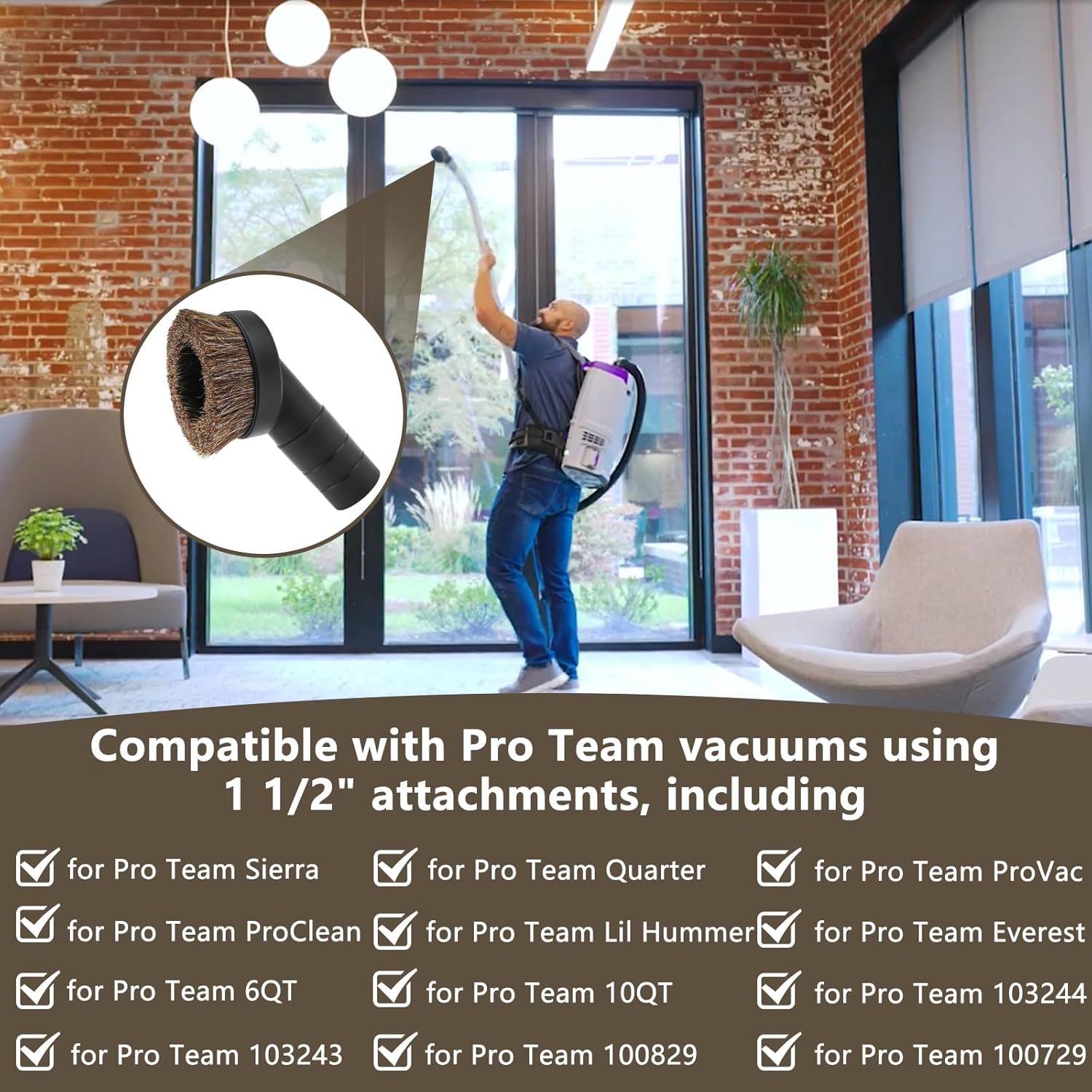 Upgrade your commercial cleaning experience with this high-performance backpack vacuum wand replacement designed for ProTeam systems. Designed for professionals seeking durability and versatility in their cleaning equipment, from schools and offices to hotels and healthcare facilities, this central vacuum wand meets the needs of professional cleaners who demand reliability and ease of use. This 56-inch long, 1 1/2-inch diameter vacuum wand is designed to replace for ProTeam vacuum parts #101338, offering a seamless fit for ProTeam commercial machines using 1.5" attachments, such as Super Coach, Pro Vac, Linevacer, Aviation, Sierra, 100277, 103220, 106782, 107308, and 107363, etc. Crafted from lightweight yet sturdy aluminum, this two piece wand delivers long-term resistance to rust and impact damage, offering the perfect balance of strength and lightweight maneuverability. The 2-bend design enhances reach and flexibility, allowing users to adjust angles to reach under desks, around obstacles, and across large open floors with ease. The integrated button lock system securely holds the vacuum wand in place during operation, eliminating accidental disconnections—a key feature for those relying on a vacuum wand in demanding environments. The brass ring on the connecting end ensures a snug, leak-free fit with various floor tools, making it an excellent choice as a for ProTeam super coach vacuum brush configurations. It’s not just a simple wand for ProTeam backpack vacuum—it’s a complete upgrade path for maintaining peak suction efficiency and ergonomic comfort. Whether you're using it for brush or floor tools, it supports versatile cleaning tasks without requiring modifications. Keep your commercial cleaning operation running smoothly with the high-performance aluminum vacuum accessories.