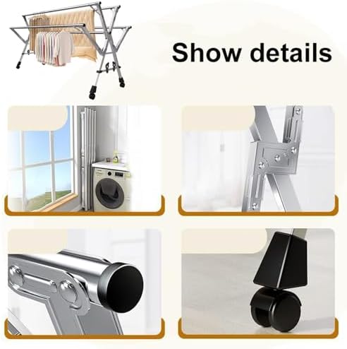 Introducing the Stainless Steel Folding Clothes Rack, your ideal companion for efficient laundry drying. Designed to enhance your laundry experience, this versatile drying rack features a sturdy and adjustable build that accommodates a variety of clothing items, including long pants and skirts, preventing them from touching the ground during drying. With its retractable design, you can easily adjust the length to fit your space, making it perfect for any room or outdoor area. The robust stainless steel construction ensures durability while the waterproof coating protects against rust, allowing you to use it in any environment without worry. Key Features: - **Quick Setup and Easy Storage**: The rack folds down effortlessly, providing a convenient solution for those with limited space. - **Adjustable Length**: Choose from multiple sizes (63", 79", or 94") to suit your drying needs and maximize efficiency. - **Mobile Design**: Equipped with four universal wheels, this rack is easy to move around, making laundry day a breeze. - **Windproof Hooks Included**: Comes with 20 windproof hooks to secure your garments, ensuring they stay in place even on breezy days. Whether you're drying clothes indoors during winter or hanging laundry outside in the sun, this Stainless Steel Clothes Drying Rack offers a reliable and practical solution for all your drying needs. Package Includes: - 1 X Stainless Steel Clothes Drying Rack - 1 X Instruction Manual - 20 X Windproof Hooks - 4 X Universal Wheels Please note that slight measurement deviations may occur due to manual measurement. Upgrade your laundry routine with this essential drying rack that combines functionality with style.