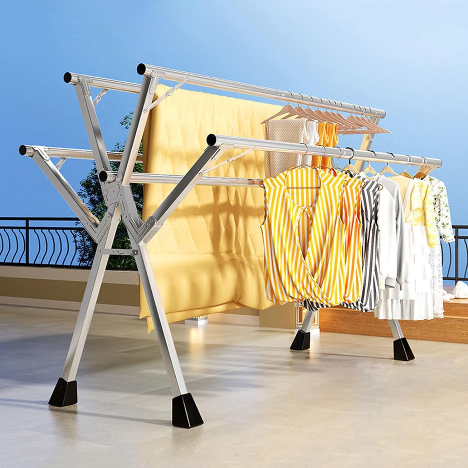 Are you tired of the hassle of drying clothes? Our foldable clothes drying rack is the perfect solution for your laundry needs. Designed with convenience in mind, this rack requires no installation and can be easily stored without taking up valuable space. **Key Features:** - **Space-Saving Design:** The foldable feature allows for effortless storage, making it ideal for apartments or homes with limited space. - **Generous Height:** Standing at 139cm, this drying rack accommodates long garments and bed sheets, ensuring they hang freely without touching the ground. - **Robust Construction:** Crafted from thick stainless steel, this clothes drying rack is both sturdy and long-lasting, providing reliable support for your laundry. - **Versatile Options:** Choose between stable feet for maximum load-bearing capacity or universal wheels for easy mobility, allowing you to move the rack wherever you need it. **Specifications:** - **Product Name:** Folding Clothes Drying Rack - **Material:** Stainless Steel Pipe - **Shape:** X-Shaped - **Sizes Available:** 1.6m (5.25ft), 2m (6.56ft), 2.4m (7.87ft) - **Suitable For:** Balcony, Bedroom, Living Room, and more **Package Includes:** - 1 Large Clothes Drying Rack This innovative drying rack is perfect for anyone looking to simplify their laundry routine while maximizing their living space. Whether you're drying delicate items or larger linens, our foldable clothes drying rack ensures efficiency and ease of use in any home. Say goodbye to clutter and hello to a more organized laundry experience!