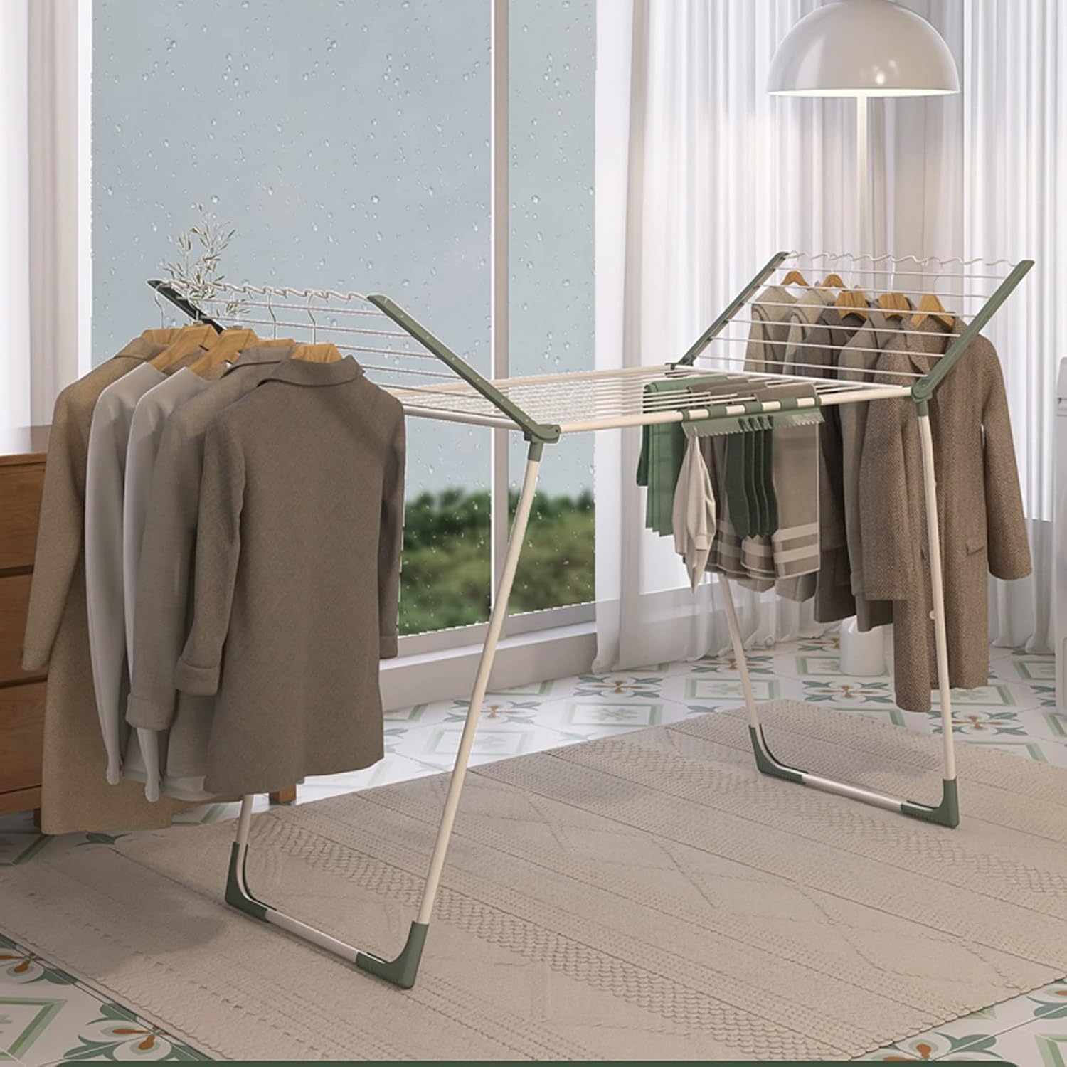 Product Description: Versatile Multi-Functional Laundry RackElevate your laundry experience with our Multi-Functional Laundry Rack, designed to meet all your drying needs. This versatile laundry rack is perfect for drying clothes, towels, bed sheets, and more, making it an essential addition to your laundry room or bathroom.**Maximize Your Space** - The foldable design allows for easy storage, making this rack a perfect solution for small apartments or homes where space is at a premium. Transform your laundry area by utilizing vertical space effectively without compromising on functionality.**Built to Last** - Constructed from high-quality stainless steel or rust-resistant plastic, this laundry rack ensures durability and reliability. Its sturdy materials are designed to withstand daily use, providing you with a long-lasting laundry solution that you can trust.**User-Friendly Design** - Setting up your laundry rack is a breeze! Assemble it in just minutes without the need for special tools. Whether you're hanging clothes indoors or outdoors, our rack adapts to your lifestyle.**Specifications:**- **Material:** Stainless steel or rust-resistant plastic- **Dimensions:** (L) x (W) x (H)- **Weight:** "X" kg/lbs- **Load Capacity:** "Y" kg/lbs- **Color Options:** Black, White, Gray**Package Includes:**1 x Multi-Functional Laundry Rack1 x Set of Instructions**Important Note:** To maintain the integrity of your laundry rack, avoid overloading it. Enjoy a reliable drying solution that fits your lifestyle and makes laundry day a little easier!