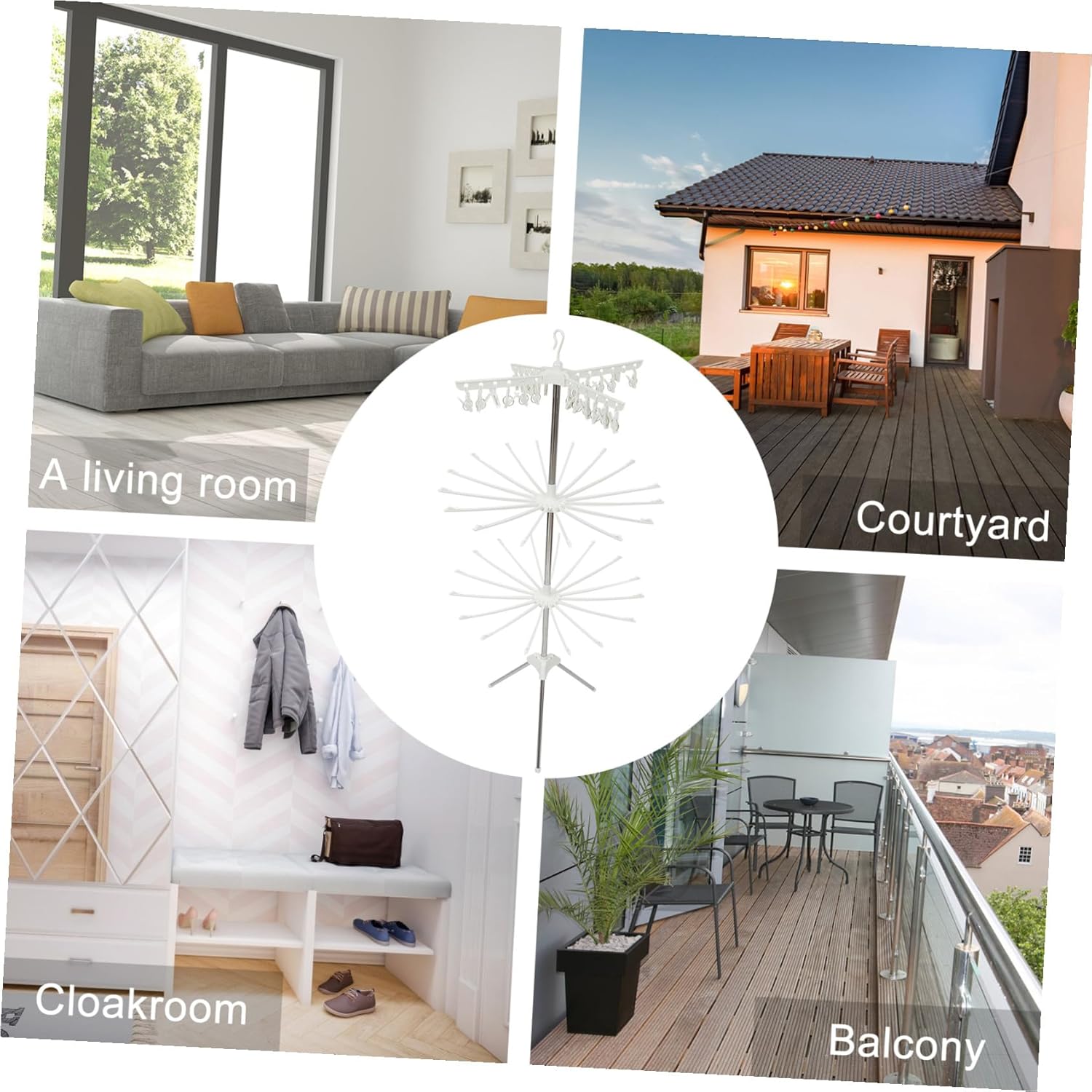 Package List 1 x triangle bracket 3 x support rods 1 x drying clip 2 x drying rods Features -Size: 170.00X77.00X77.00cm/66.81X30.26X30.26inch small clothes drying rack -Material: Alloy, ABS Rack for Air Drying Clothing -Color: White drying rack clothes -Product Info:Clothes rack -Can hang up to 32 towels and socks in compact space for multipurpose drying or storage wall-mounted foldable laundry drying rack. -Perfect for hanging clothes, socks, cloth diapers, towels, , gloves, handkerchiefs windproof clothes drying rack. -A room-saving drying rack is very important for the household with laundry room drying rack clothing. -Rotatable rack, free adjustment of sun exposure angle, saving space and easy to dry home drying rack clothing. -Our folding dryer for apartments saves you from bad-smelling clothes as it allows air to freely circulate clothes dry rack.Goods Descriptionmetal clothes drying rack This drying rack is folding, perfect for your loft, dorm or apartment with space, and this compact air drying rack has enough capacity to hold your wet clothing, with quality alloy material, this drying rack is toughness, strong and not easy to break or rust