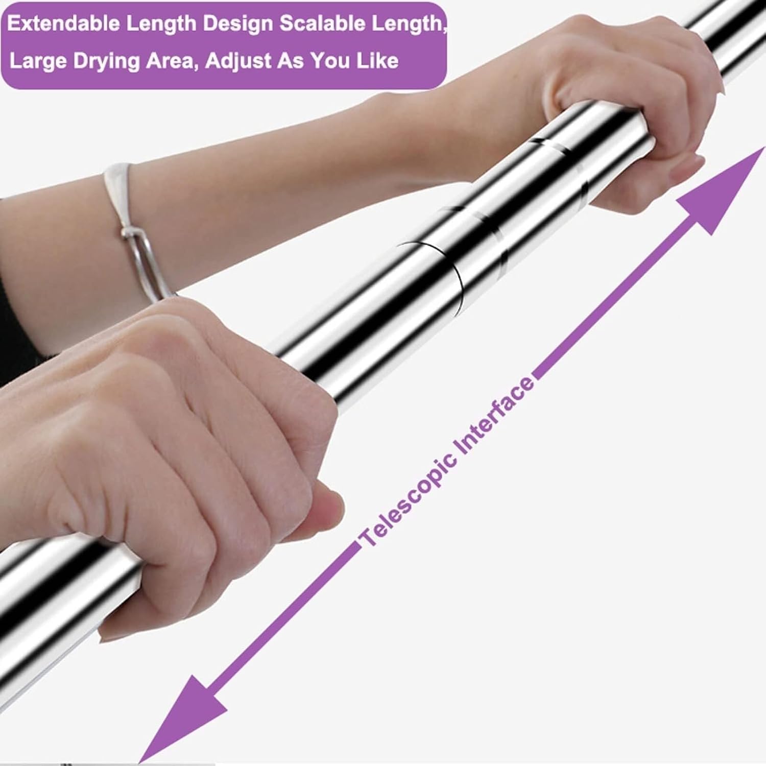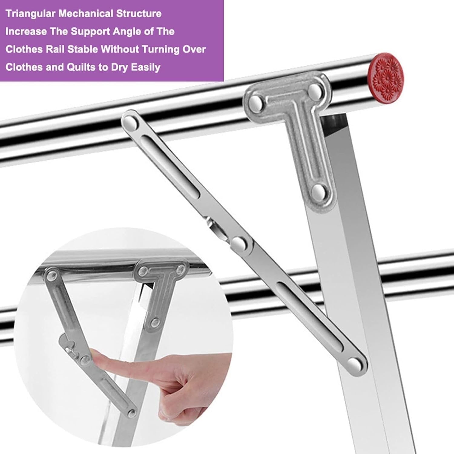 Upgrade your laundry routine with our Heavy Duty Stainless Steel Foldable Clothes Drying Rack, designed to combine strength, functionality, and space efficiency. Crafted from stainless steel, this drying rack supports an impressive 300-pound load, making it perfect for drying heavy blankets, quilts, towels, and large clothing loads both indoors and outdoors.Its adjustable length extends up to 79 inches (2.0 meters), giving you customizable drying space that fits your needs. The innovative double-row design maximizes drying capacity while ensuring proper airflow for faster drying times. The sturdy triangular base enhances stability, minimizing wobbling or tipping even when fully loaded.When not in use, the rack folds flat effortlessly for easy storage, ideal for small apartments, bedrooms, balconies, or laundry rooms where space is limited. Featuring stylish yellow-gold angled accents and plastic end caps, this drying rack also adds an elegant touch to your home. Whether for everyday laundry or heavy-duty drying, this versatile rack offers a practical, durable, and aesthetically pleasing solution to keep your clothes organized and dry efficiently.