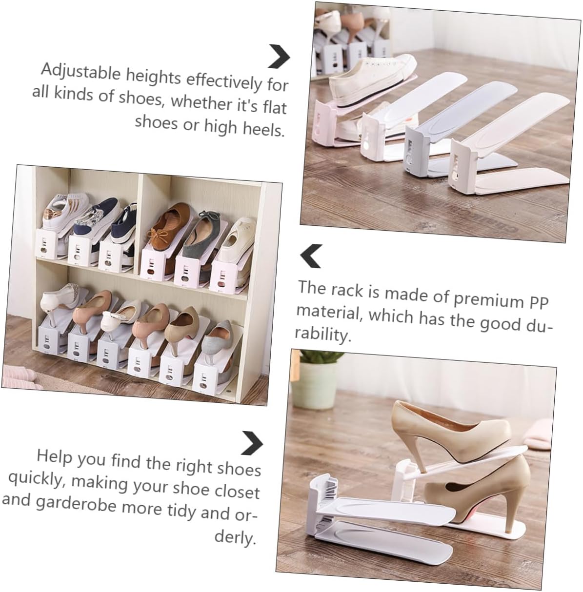 Package Include 10 x shoes racks Features - Color: White. -Product Info:Shoe bracket - Size: 27.00X10.00X8.00cm/10.61X3.93X3.14inch. - Material: PP. - , you can buy this practical product at an Adjustable Shoe Holder. - Multipurpose design, it is a practical rack for shoes and slippers. Non skid design, with a back stopper to prevent shoes from falling off Shoe Storage Organizer - Manufactured with , with excellent durability and practicality. - Features the compact size and adjustable design, without taking up too much space. - You can easily adjust the height of shoes slots organizer according to the shoes size.Goods InformationShoes Holder Adjustable design, it takes full use of cabinet space, make your room more spacious and tidy.Adjustable Shoe Holder Adopted of , it is practical and for long time use.Household Shoes Rack If you are looking for a professional and shoes rack, then your research is over here.Shoes Storage is easy to use and bring you much convenience.Shoe Organizer That's because our product can meet your need